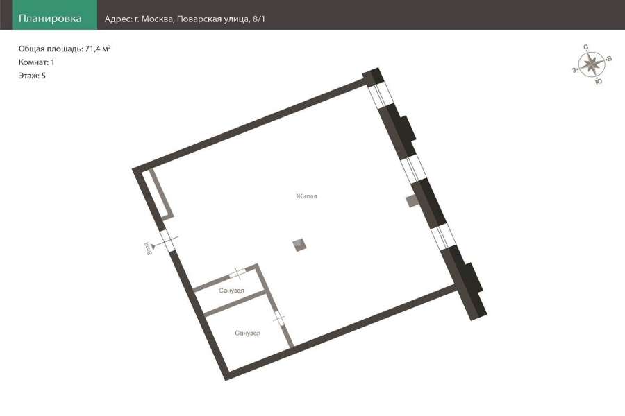 | Кол-во комнат: | 1 |