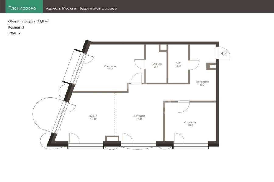 | Площадь квартиры: | 72.9 кв. м |