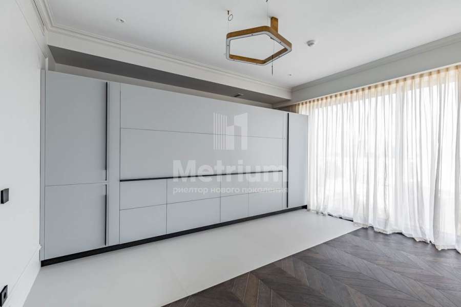 Предлагается прекрасный апартамент на 14 этаже, в комплексе премиум-класса «Поклонная, 9», площадью 100,9 кв. м. Функциональная планировка включает в себя просторную кухню-столовую-гостиную с видом на Сити, мастер-спальню со своей ванной комнатой, гостевую спальню, постирочную, гардеробную и санузел с душевой кабиной. В дизайнерской отделке использованы качественные натуральные материалы, паркет из ценных пород дерева, кухня и санузлы оборудованы премиальной техникой. В апартаменте установлена безупречная итальянская кухня Valcucine в современном стиле, в спальнях кровати Baxter, в гостиной зоне уникальная подвесная композиция Quid от Poliform, свет представлен люстрами от Henge и Vistosi. Стоимость указана без мебели! Высота потолка 3 метра. В наличии есть машиноместо в подземном паркинге и кладовое помещение (в стоимость не входят). Комплекс находится под круглосуточной охраной, сигнализацией, системой видеонаблюдения. Дом расположен на второй линии Кутузовского проспекта, что обеспечивает тишину и удобную транспортную доступность. Развитая инфраструктура района Дорогомилово и сервис 5* от оператора SO сделают проживание еще более комфортным.