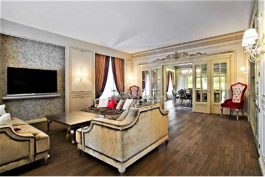 Предлагается двухуровневая квартира общей площадью 320 кв.м. с отделкой в классическом стиле. На первом уровне расположены: кухня-гостиная, спальня, 2 санузла, гардеробная, подсобное помещение. На втором уровне - кухня-столовая, гостиная, основная спальня со своим с/у и гардеробной, 2 спальные комнаты, гостевой санузел, постирочная. Высота потолков - 3,3 м. Квартира полностью меблирована и оборудована техникой. Вид из окон на липовую аллею и тихий двор. Имеется свой собственный вход и палисадник перед домом. 2 машиноместа входят в стоимость.