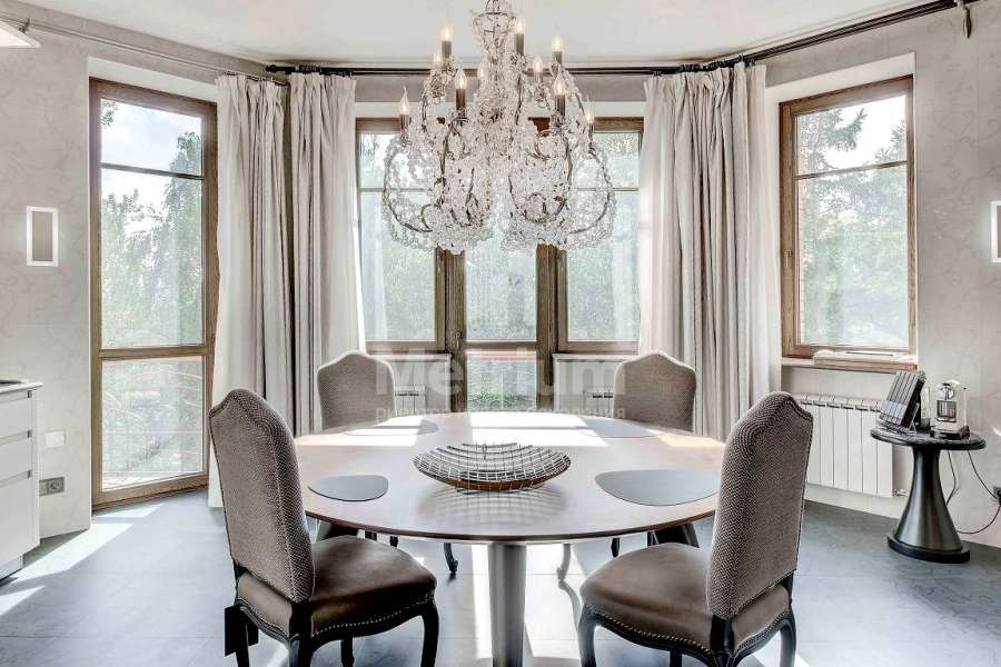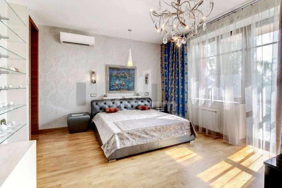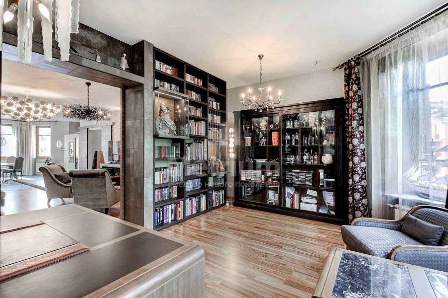 Предлагается 4-комнатная квартира общей площадью 192 кв.м. в ЖК Фонд развития Международного Университета. Спланировано: две изолированных спальни, гостиная-столовая с камином, кабинет, три санузла, сауна, хаммам, гардеробная, холл, классический балкон и «французский» балкон. Окна выходят на три стороны в кроны деревьев. Три «полных» эркера (кухня/столовая, кабинет, основной санузел). Потолки – 3 метра. Машиноместо в подземном паркинге. Инфраструктура: в границах поселка: детский сад, школа (1-11 классы), теннисные корты. В шаговой доступности: продовольственный магазин, аптека, фитнес-центр с бассейном, мойка машин, остановки автобуса и маршрутного такси.Пропускная система и круглосуточное патрулирование территории поселка. Кирпичный дом 1999 года, семь этажей, всего 15 квартир; подземный паркинг; консьерж.