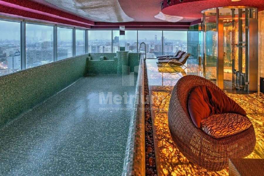 Предлагается 4-уровневый пентхаус в районе Шаболовки, в 5 минутах от Кремля. Выход на крышу. Открытая терраса с панорамным видом на город. Собственный лифт. На первом уровне разместилась большая, поделенная на несколько зон гостиная. Площадь первого уровня 149,3 кв. м. На втором уровне пентхауса расположена хозяйская зона: спальня в минималистическом стиле, кабинет, оснащенный техническими системами последнего поколения; большая ванная и комната отдыха. Площадь второго уровня 130 кв. м. На третьем уровне разместился бассейн с прозрачными стеклянными ограждениями и панорамными видами на центр города, а также сауны и тренажерный зал. Площадь третьего уровня 149,2 кв. м., бассейн - 64,3 кв. м. Четвертый уровень пентхауса - гостевая зона. Две гостевые спальни выполнены в стиле "ЭКО". Предусмотрен выход на открытую летнюю террасу. Площадь четвертого уровня 194,2 кв. м. Из пентхауса открываются виды на Кремль, Храм Христа Спасителя, Калужскую площадь, Московский Университет, Парк Искусств, Парк Культуры и другие любимые достопримечательности Москвы. Прямой выезд на Садовое кольцо и Ленинский проспект, 5 минут на автомобиле до Кремля. Тихий престижный район, 5 минут пешком до Парка Горького и набережной Москва-реки.