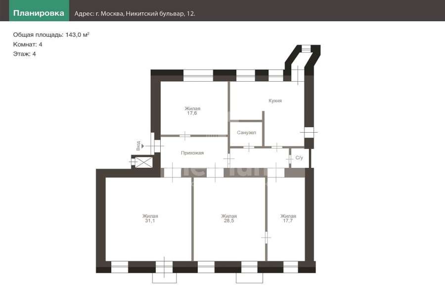 Знаменитый дом архитектора Н.А.Нилуса, дореволюционный особняк после реконструкции. Квартира, с отделкой общей площадью 143 кв.м., родная отреставрированная лепнина, арки и межкомнатные двери. Окна на две стороны - Никитский б-р и тихий дворик, 2 балкона с панорамным видом от Храма Христа Спасителя, Нового Арбата до площади Никитских ворот. Потолки 3,60 м (есть возможность разделить комнату и получить пятикомнатную квартиру с четырьмя спальнями). Круглосуточная охрана, видеонаблюдение. Благоустроенная придомовая территория с лавочками и клумбами. Уютный парадный подъезд после ремонта. До Кремля 10 мин пешком.