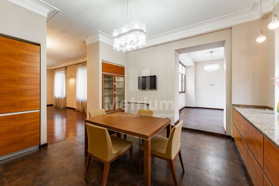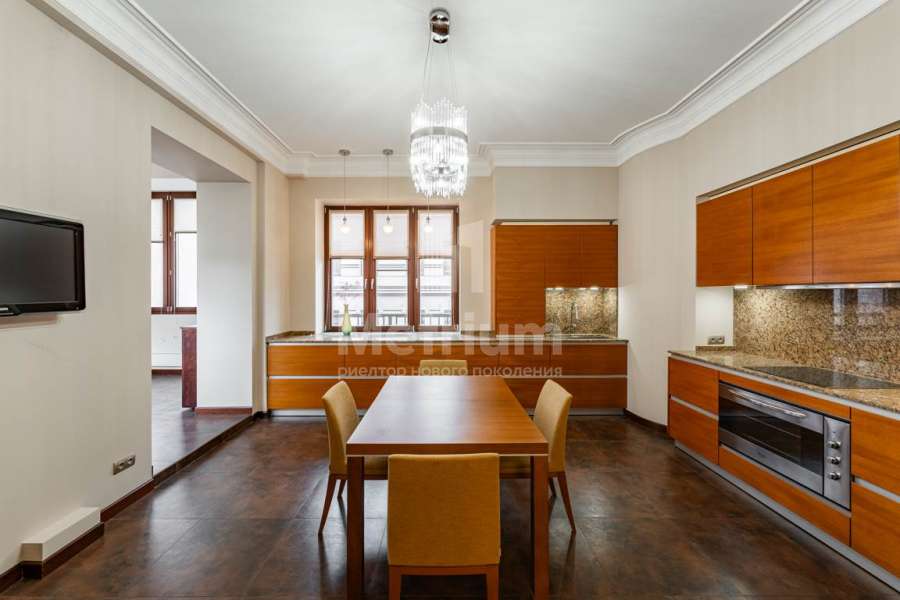 Предлагается 5-комнатная квартира в районе Патриарших прудов. В отделке использованы качественные натуральные материалы (ценные породы дерева - палисандр, тик, дуб; натуральный камень), бытовая техника и освещение от ведущих мировых производителей. Функциональная планировка включает в себя кухню, гостиную, столовую-зимний сад с выходом на балкон, мастер-спальню с ванной комнатой и хамамом, 2 спальни с ванной комнатой, гардеробную, постирочную-кладовую, гостевой санузел. В наличии 2 машиноместа в подземном паркинге. В элитном доме огороженная территория, круглосуточная охрана и видеонаблюдение. Удобная транспортная доступность и развитая инфраструктура района сделают проживание в квартире еще более комфортным.