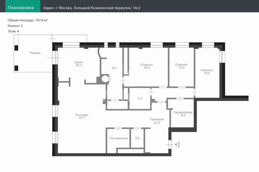 | Площадь квартиры: | 187.8 кв. м |