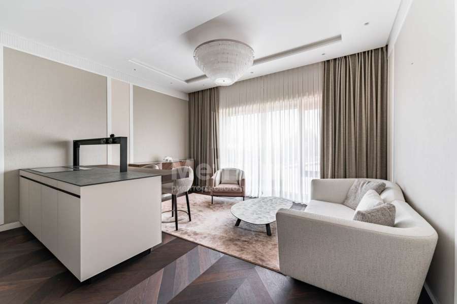 Предлагается 2-комнатная квартира в жилом комплексе Вишневый Сад. Интерьер выполнен по эксклюзивному авторскому проекту. В безупречной отделке использованы качественные натуральные материалы. Квартира полностью укомплектована мебелью, предметами интерьера, оборудована современной бытовой техникой от ведущих мировых производителей и готова к проживанию. Функциональная планировка включает в себя кухню-гостиную, спальню с ванной и гардеробной комнатами, гостевой санузел с постирочной. ЖК Вишневый Сад - это полностью обособленный комплекс, со своей благоустроенной территорией и уникальной средой, где расположился частный детский сад и площадки, несколько кафе, фитнес с СПА и бассейном. Круглосуточная охрана, въезд по пропускам. Подземный паркинг.