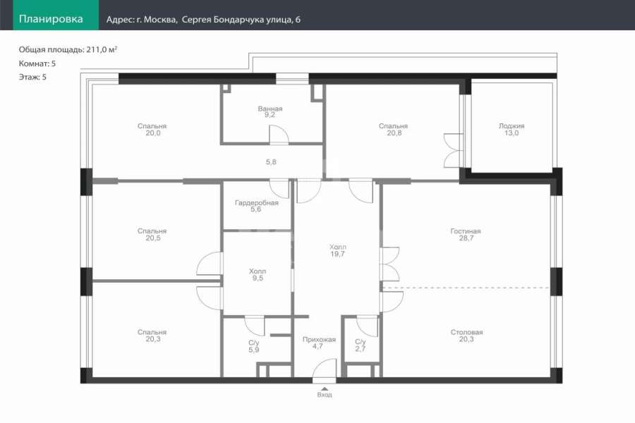 | Площадь квартиры: | 211 кв. м |