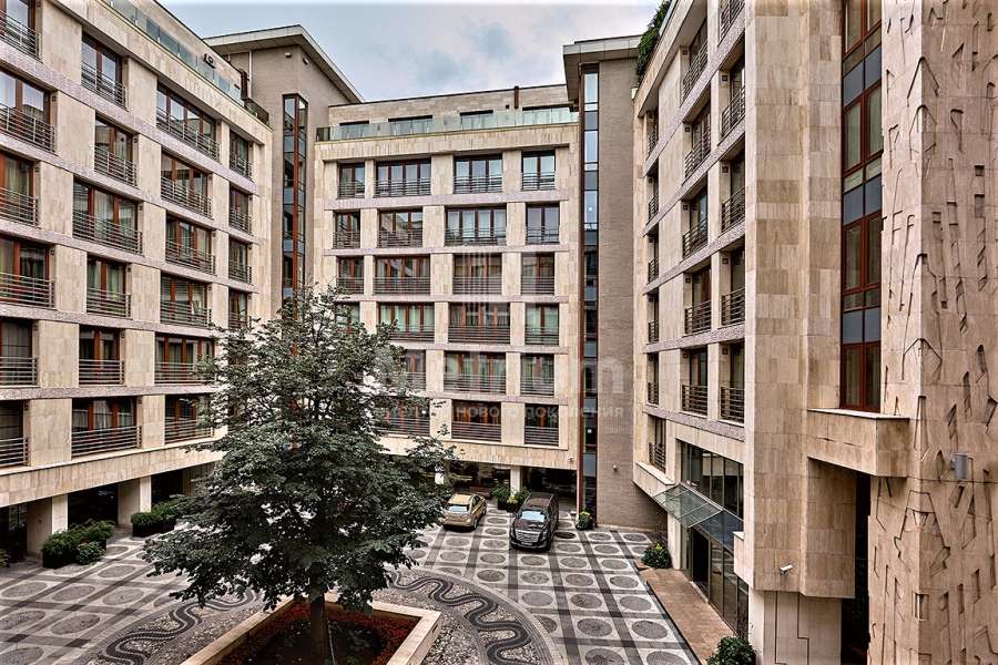 Жилой комплекс категории De Luxe «Новая Остоженка» расположился на «Золотой миле» Остоженки, недалеко от храма Христа Спасителя и других исторических памятников и достопримечательностей. Комплекс, состоящий из двух корпусов, гармонично вписывается в застройку района благодаря лаконичному архитектурному облику и отделке натуральными материалами. Фасады отделаны травертином в оформлении известного художника, скульптора и живописца Юрия Вайса. В вестибюле создана специальная схема внутренней иллюминации, даже для индивидуальных почтовых боксов разработана декоративная подсветка. Жемчужина жилого комплекса – пентхаус площадью около 2 000 кв.м. Напольное покрытие террас выполнено из тика, внешние стены отделаны натуральным белым мрамором. В жилом комплексе установлено уникальное лифтовое оборудование фирмы KONE, изготовленное по индивидуальному заказу. Зеркальный свод кабины выполнен из нержавеющей стали, стены лифта отделаны панелями из карельской березы, пол покрыт мраморной мозаикой. Жилые корпуса объединены между собой оригинальной подземной галереей-переходом, эффектно оформленной в "археологической" стилистике. Большой корпус комплекса располагает благоустроенным двором, в центре которого посажена бельгийская липа высотой более 11 м. Внутри двора выполнено мощение натуральным камнем. Придомовая территория малого корпуса благоустроена, проведено комплексное озеленение, а у въезда на территорию растет многолетняя ива и столетний вяз, сохраненные при строительстве. Уникальная для центра города двухуровневая подземная часть каждого корпуса позволяет разместить большой паркинг.Потолки3,2.Современная.приточно-вытяжная вентиляция, система очистки воздуха.газоны, ландшафтный дизайн, озеленение, освещение, парковая зона, цветники.Этажность: 7
