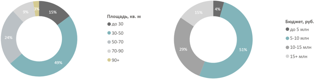 Если годом ранее в диапазоне бюджета до 10 млн рублей было сосредоточено 64% предложения, то сейчас в этой ценовой категории экспонируется всего 51% рынка (-13 п.п.). Также за год на 9 п.п. выросла доля предложения от 15 и более млн, составив 15%.