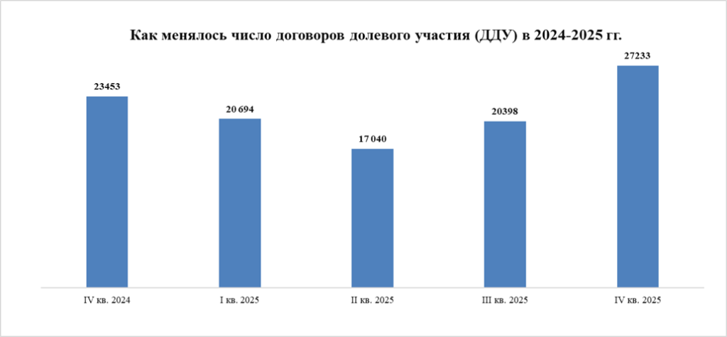 В декабре 2025 года, согласно данным Росреестра Москвы, рынок строящегося жилья завершил год мощным всплеском активности. Всего за месяц было зарегистрировано 11,2 тыс. договоров долевого участия (ДДУ), что на 13% больше, чем в декабре 2024 года (9,9 тыс. ДДУ). Относительно ноября 2025 года (8,3 тыс. ДДУ) спрос вырос на 36%.