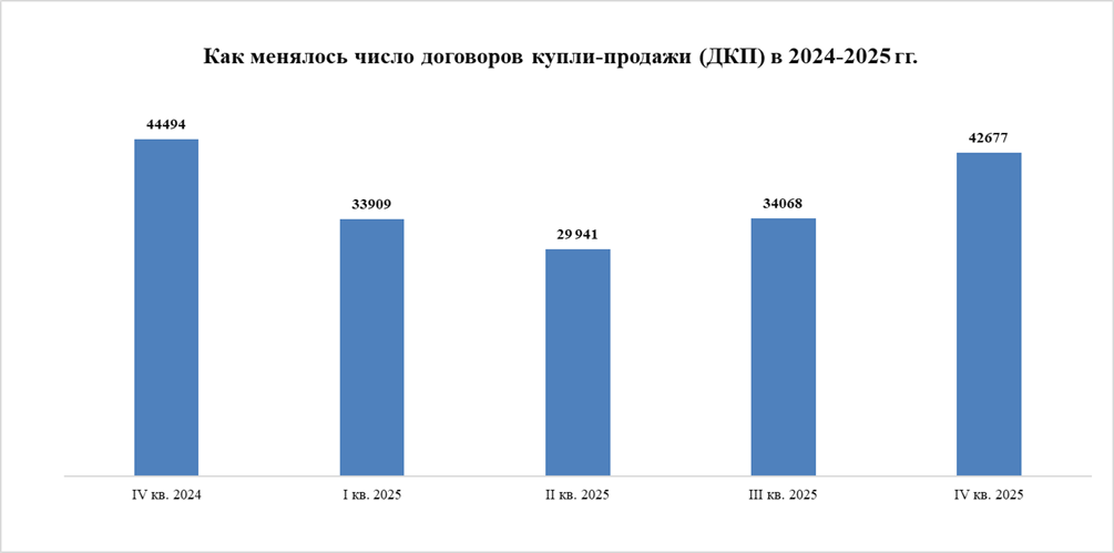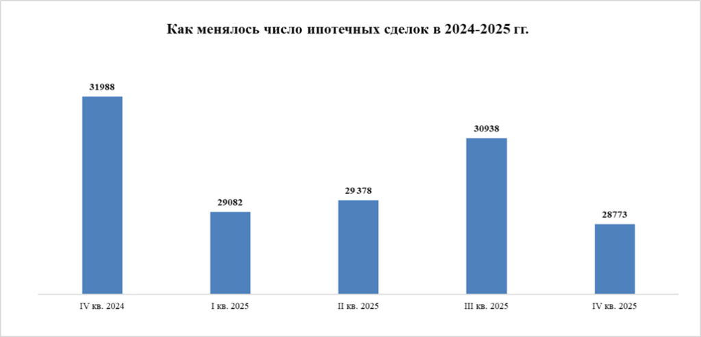 На ипотечном рынке в декабре 2025 года было зарегистрировано 10,8 тыс. кредитных сделок, что на 4% меньше, чем в декабре 2024 года (11,2 тыс. соглашений). Относительно ноября 2025 года (8,2 тыс. сделок) спрос вырос на 32%.