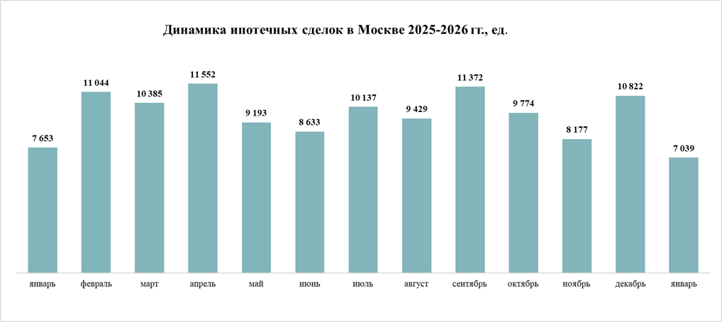 На ипотечном рынке в январе 2026 года было зарегистрировано 7 тыс. кредитных сделок, что на 8% меньше, чем в январе 2025 года (7,7 тыс. соглашений), и на 35% меньше, чем в декабре 2025 года, когда количество соглашений между банками и заемщиками составило 10,8 тыс. Снижение спроса на ипотеку относительно прошлого года усилилось: год назад спад составлял 3%, теперь – 8%.