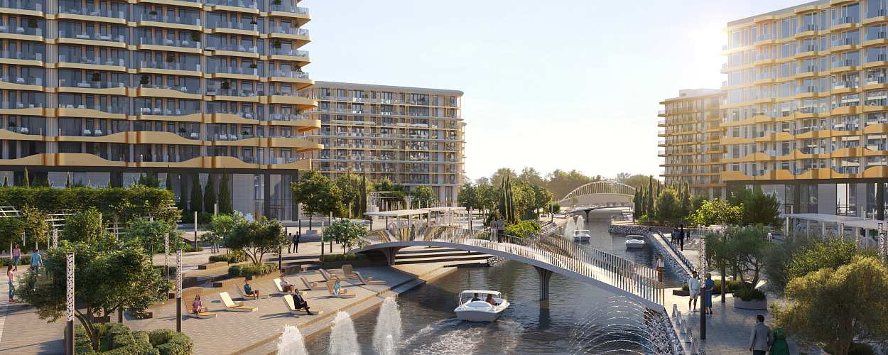- Набережная внутри курорта, проходящая вдоль природного водоема
