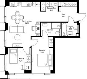 2-комнатная квартира, 67.7 м2