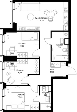 В продаже квартира площадью 73.9 кв.м. в Мультиквартал VEER по адресу Верейская улица, 29.