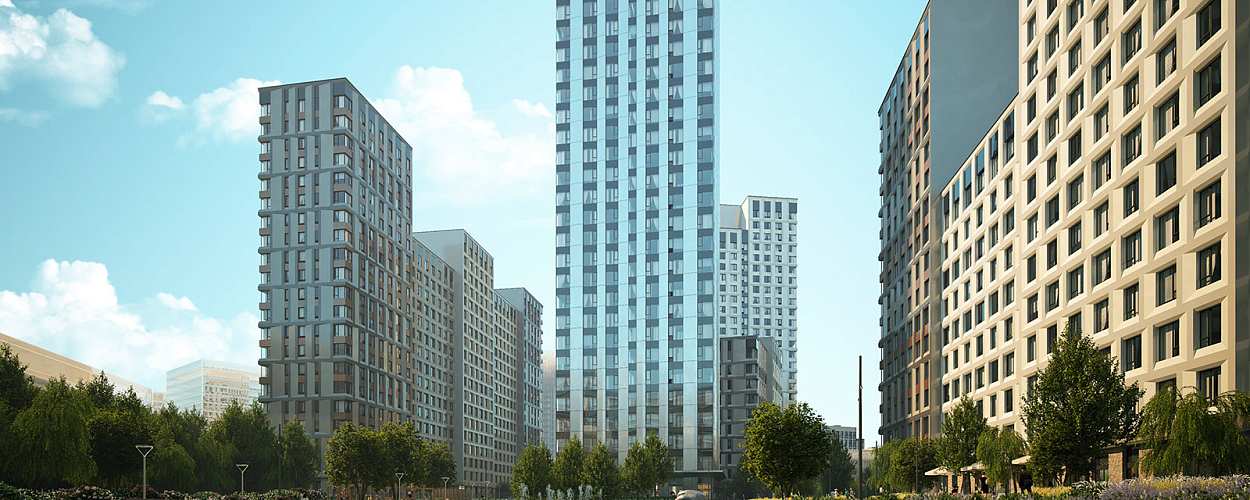 С верхних этажей домов жилого района откроются потрясающе панорамные виды на Москва-реку и её благоустроенную набережную.