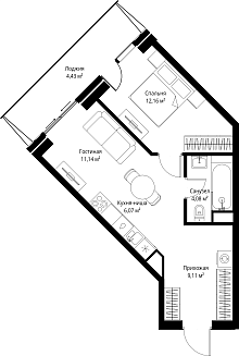 Площадь: 40.73 м2