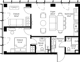 2-комнатная квартира, 69.13 м2