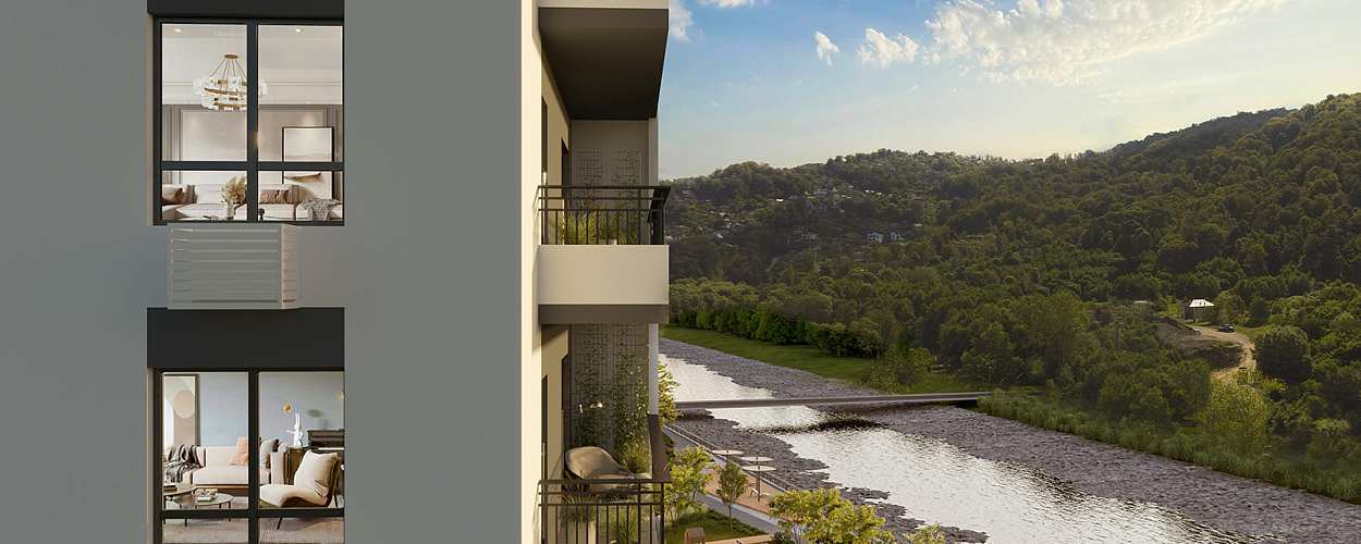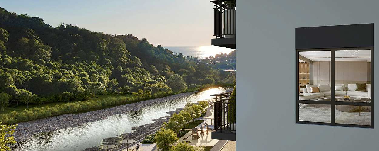 Жилой комплекс расположен на комфортном удалении от шумных магистралей и окружен зеленью заповедника. Вблизи комплекса будет построена новая яхтенная марина на насыпном полуострове. Внутри закрытой территории появятся собственные бамбуковая роща и релакс-набережная со спортивными зонами. На территории предусмотрены зарядные станции для электромобилей, а также многоуровневый наземный паркинг на 524 машиноместа, пропускная система с видеонаблюдением, новые детский сад на 550 мест и школа на 2000 мест.