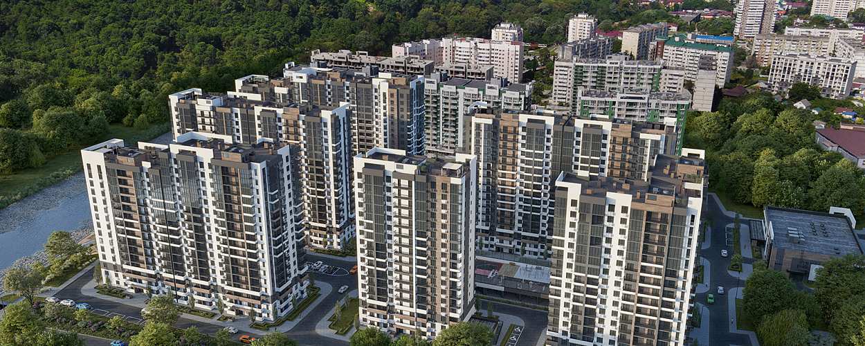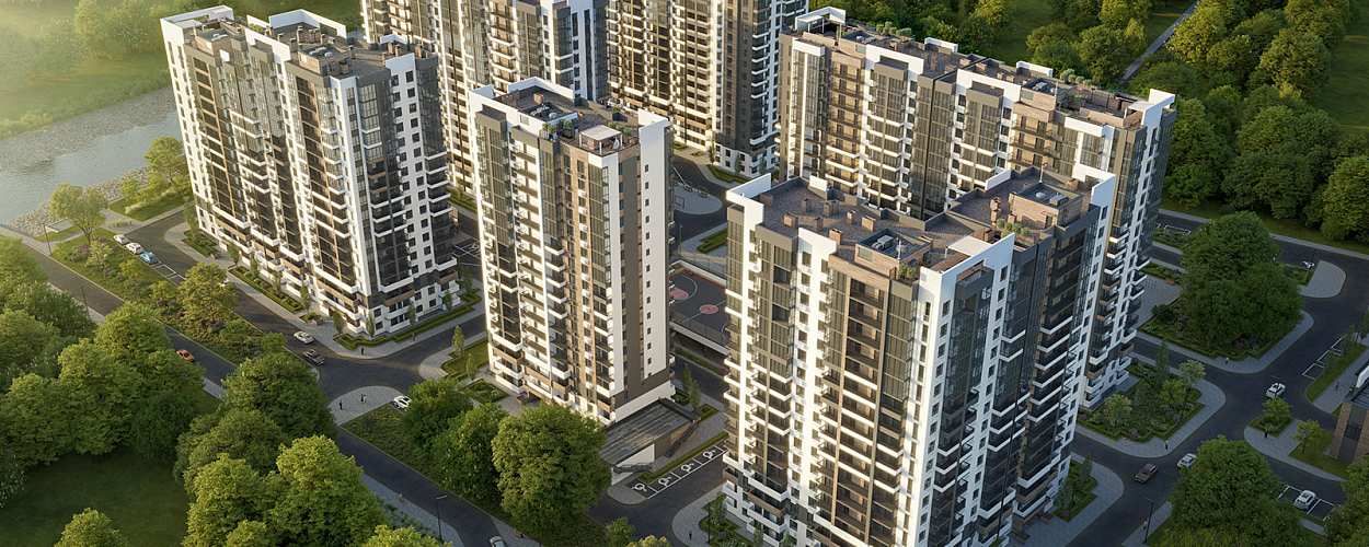 Комплекс состоит из 6 монолитных домов переменной этажности (15–17 этажей), рассчитанных на 1866 квартир. На крыше каждого корпуса будут оборудованы зеленые террасы.