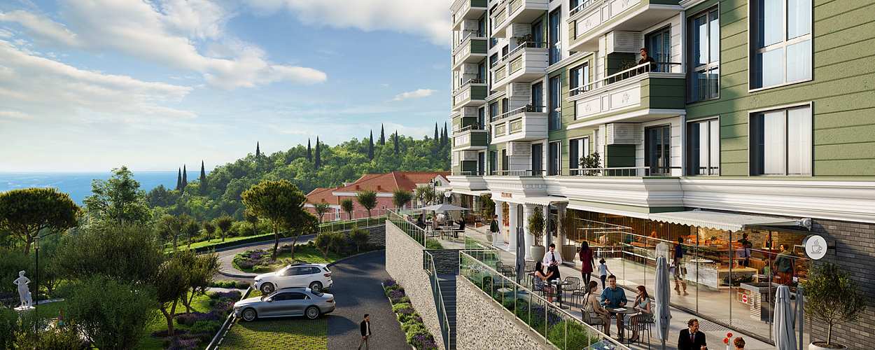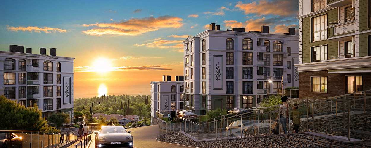 Архитектура комплекса выполнена московским архитектурным бюро UPLAND STUDIO. Комплекс состоит из 10 жилых домов, выполненных в едином неоклассическом стиле. С верхних этажей каждого дома открывается панорамный вид на море и горы. Диапазон площадей квартир составляет от 25 до 54 кв. м. В квартирах установлено автономное отопление и произведена шумоизоляция.