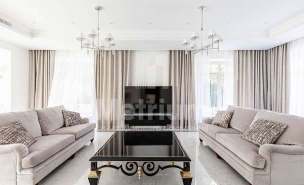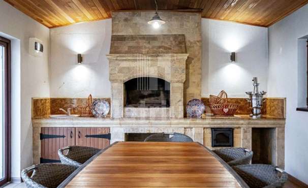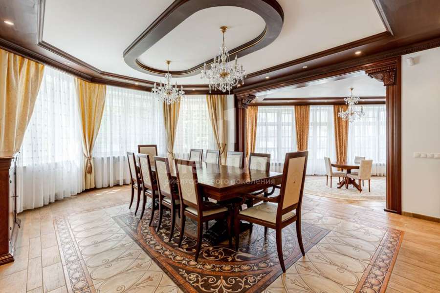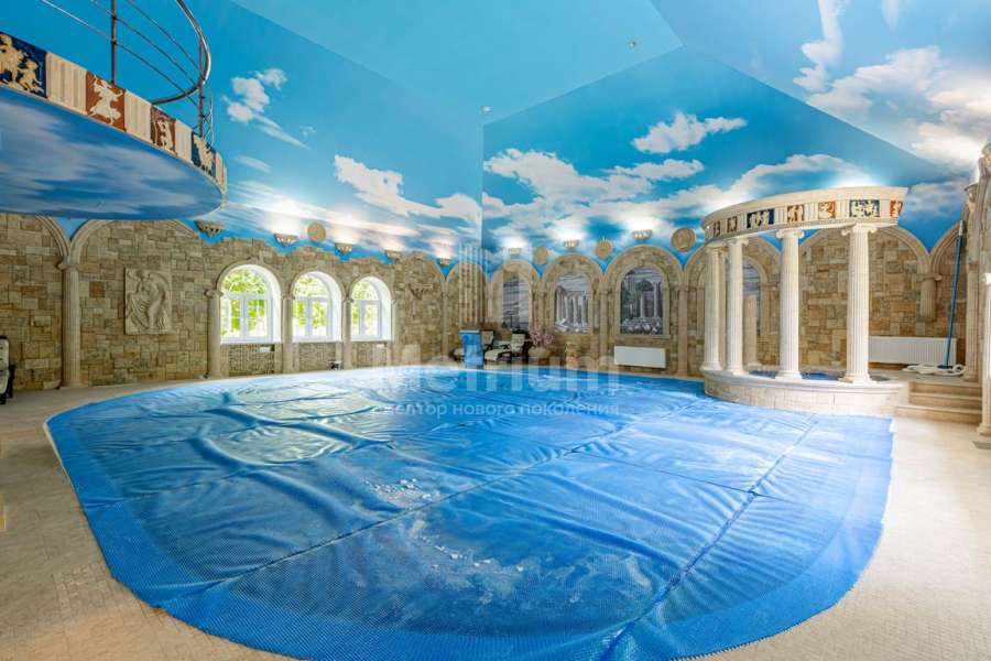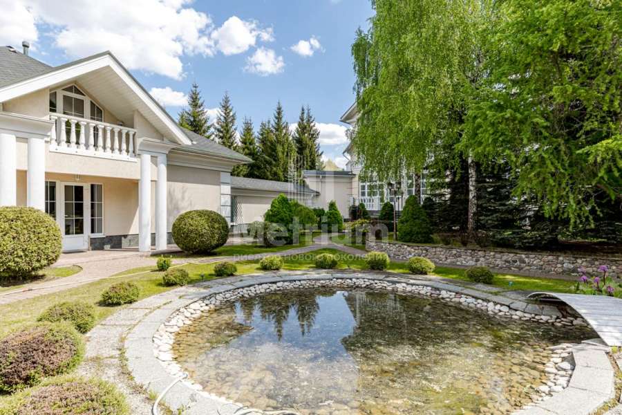 Коттедж с ландшафтным дизайном. На участке 6 отдельно стоящих зданий (жилой дом с переходом в бассейн и фитнес зал, летняя кухня с русской дровяной печкой, жилой дом для обслуживающего персонала с гаражом на 2 авто, жилой дом на 2 авто, жилой дом с гаражом на 3 авто. На участке около 300 елок, сосен, берез, туй и др. Тротуары и дорожки, мощенные брусчаткой.