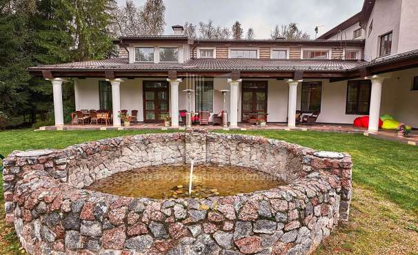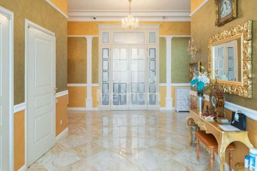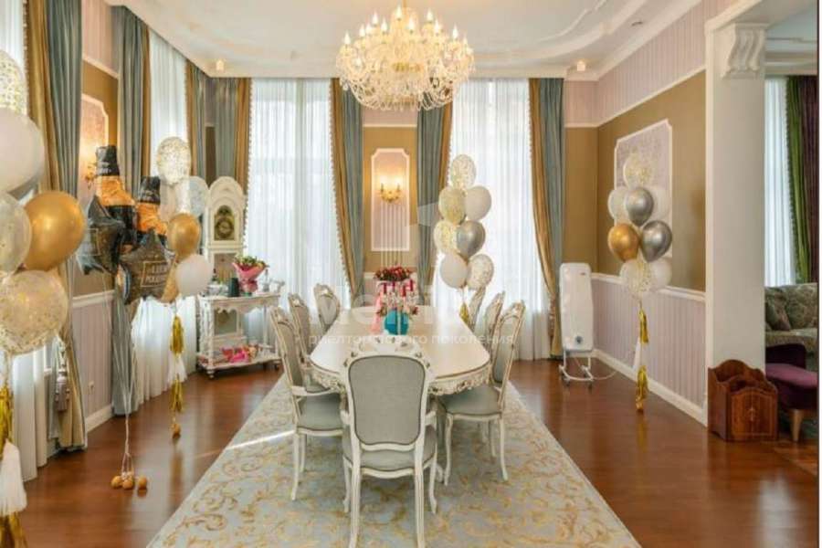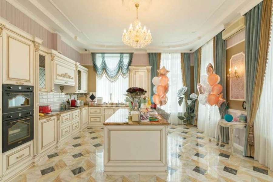Трехэтажный дом в классическом стиле площадью 650 кв.м располагается на участке 12 соток с ландшафтным дизайном в охраняемом коттеджном поселке "Рождественно", в непосредственной близости от столицы.