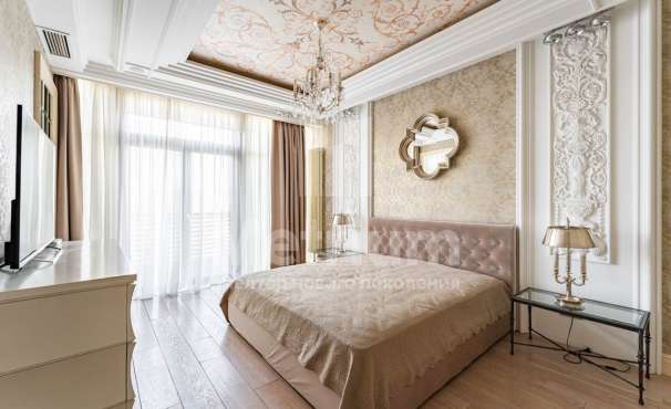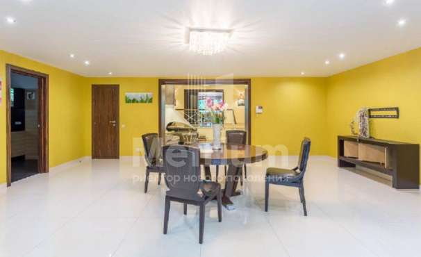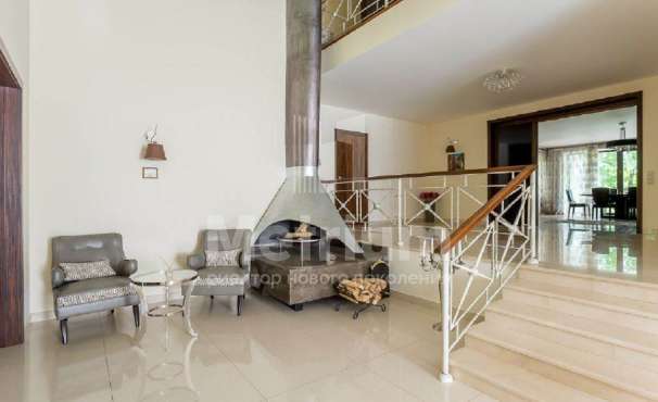 Дом полностью меблирован и оборудован всей необходимой техникой от ведущих мировых производителей. На первом этаже находится гостиная, совмещенная с кухней и обеденной зоной, кабинет, бассейн, сауна, гостевой санузел, детская игровая, гардеробная, кладовая и помещение свободного назначения. Второй этаж занимают четыре спальни с индивидуальными гардеробными и санузлами. Третий этаж отведен для двух спален с санузлами и тренажерного зала. Отдельно построен гараж на два машиноместа с квартирой для персонала, есть беседка.