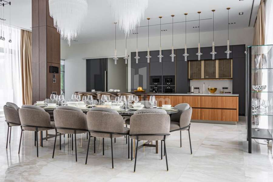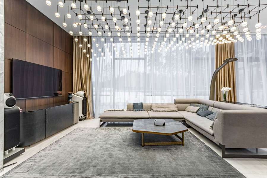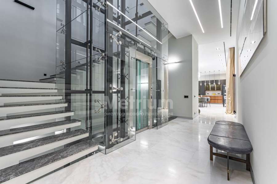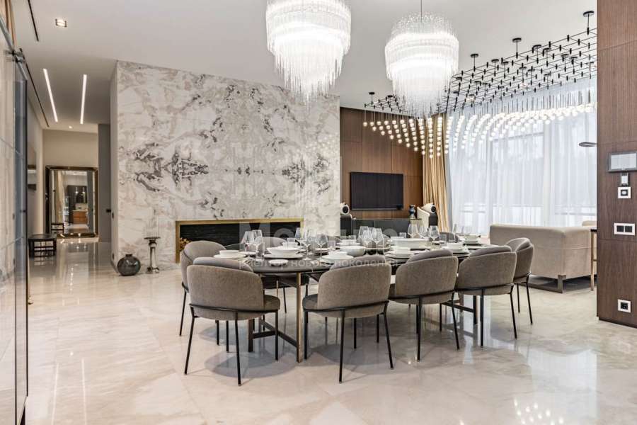 Дом подключен ко всем коммуникациям, обставлен мебелью и аксессуарами мировых брендов Porada, Minotti, Baxter, Rugiano, Ulivi, Ipe cavalla, Bosa, Fiam, Tom Dixon. Санузлы оборудованы сантехникой Duravit, Fir, Cea Design, Antonio Lupi, кухня Siematic – бытовой техникой GAGGENAU. В отделке использованы качественные материалы: натуральный мрамор, керамогранит GRANITI FIANDRE, дубовый паркет, оконные системы SCHUCCO, двери RIMADESIO. Фасад облицован клинкером от JANINHOFF.