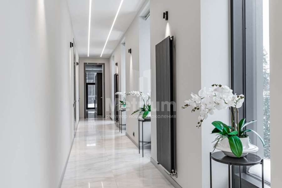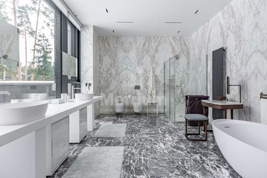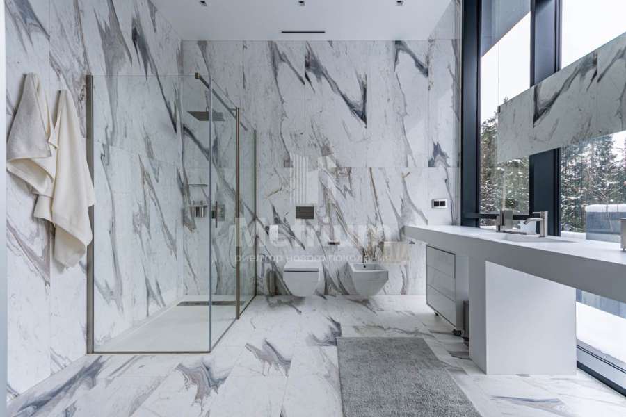 | Этажи/уровни: | Цоколь: хозяйская зона: кинотеатр, винная комната, небольшая гостиная, санузел; вспомогательные помещения: спальня для персонала с санузлом, прачечный комплекс, 2 кладовые комнаты, серверная, тех. помещение бассейна, вентиляционная, помещение для спец. инвентаря. 1-й этаж: холл, две гардеробные для верхней одежды, гостевой санузел, кабинет с санузлом, гостиная-кухня-столовая, спальня с гардеробной и ванной комнатой, Spa-зона с бассейном, сауной и тропическим душем. 2-й этаж: просторная мастер-спальня с зонами гостиной и библиотеки, ванная комната с панорамными окнами и вместительная гардеробная, 2 спальни с гардеробными, ванными комнатами и просторными террасами с потрясающим видом, сервисная комната с постирочной. 3-й этаж: помещение свободного назначения с ванной комнатой (может быть спальней, кабинетом или спортивным залом). Открытая терраса-гостиная на уровне макушек вековых сосен. |