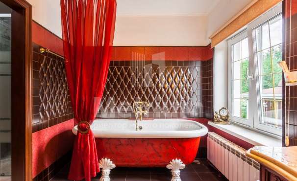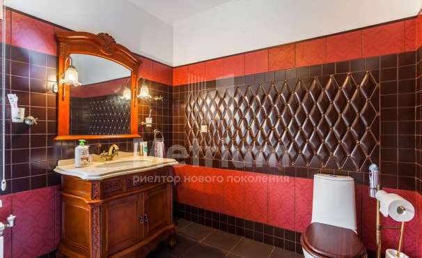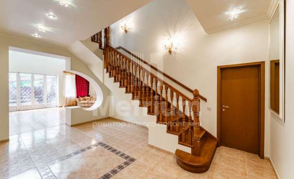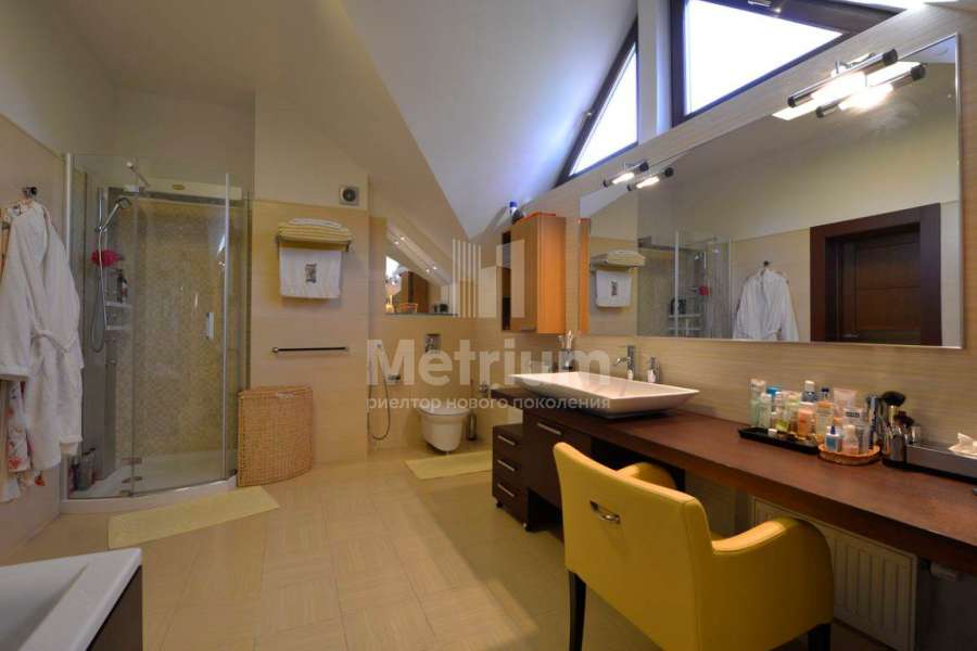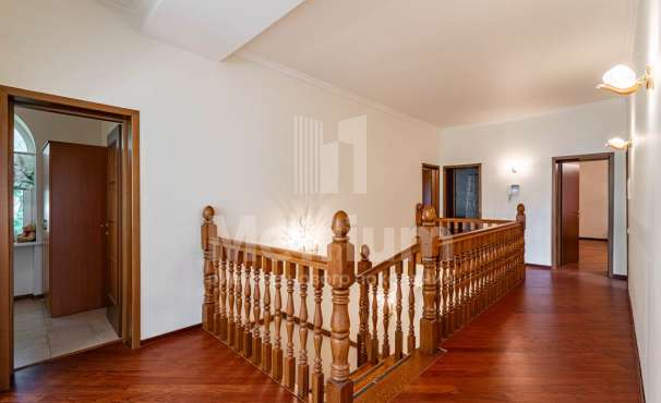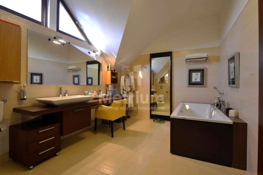 | Этажи/уровни: | 1 этаж: двухсветный каминный зал, кабинет, кухня-столовая, гардеробная комната, ванная комната, веранды и балконы 2 этаж: спальная комната владельцев со своей гардеробной комнатой, две спальные комнаты, ванная комната, холл-библиотека Цокольный этаж: бильярдный зал, домашний кинотеатр, спальная комната для гостей, бассейн, сауна, помещение технического назначения |
