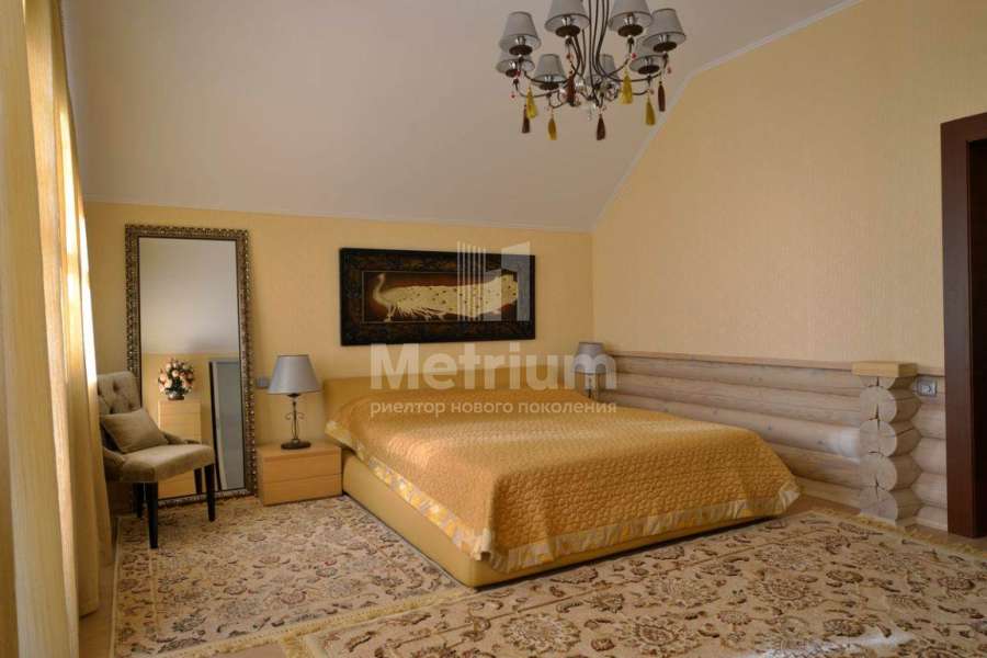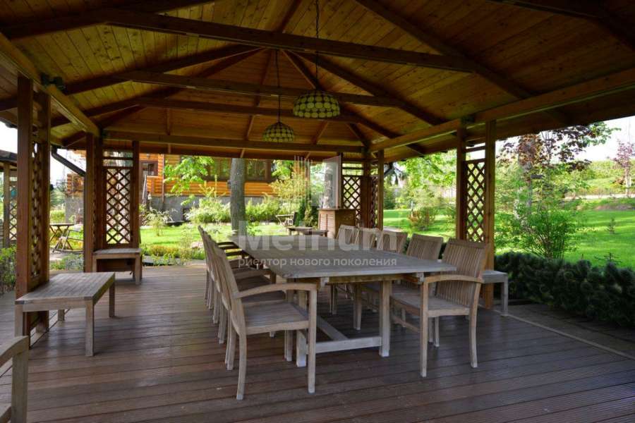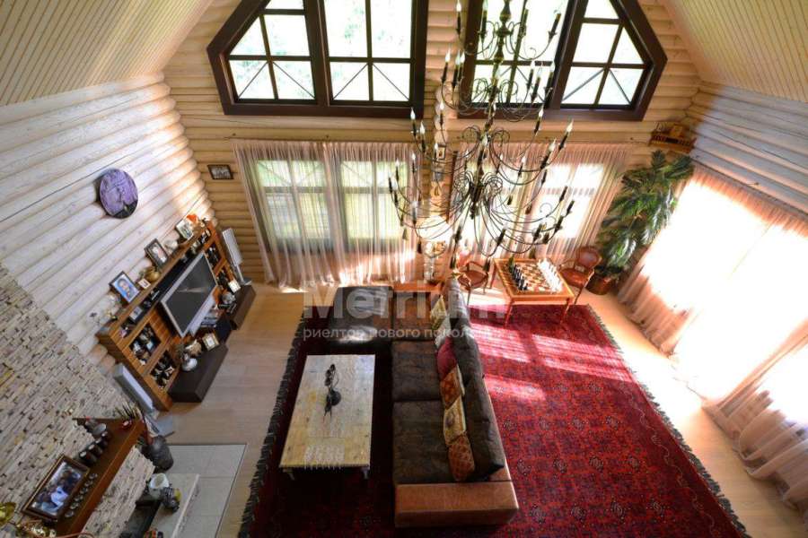 Коттедж в КП “Холмы”. Подъехать к поселку можно как по Волокамскому, так и по скоростному Новорижскому шоссе. Коттедж построен из оцилиндрованного бревна, цокольный этаж - монолитно-кирпичный. По периметру опоясывает открытая веранда. Двухсветный каминный зал с панорамным остеклением позволяет в полной мере наслаждаться природным ландшафтом.На просторном участке выполнен дренаж, посеян газон, проложены прогулочные дорожки. Растут взрослые лесные и плодовые деревья, высажены кустарники и цветы. Зона BBQ состоит из мангальной части и большой крытой беседки, где вмещается большая компания.