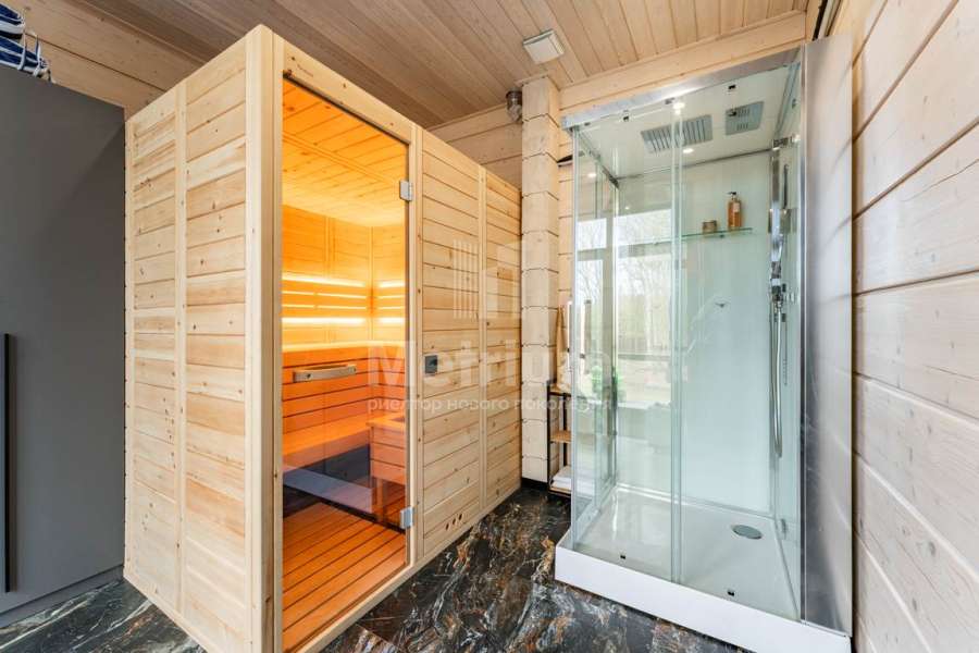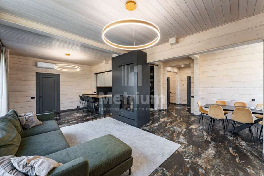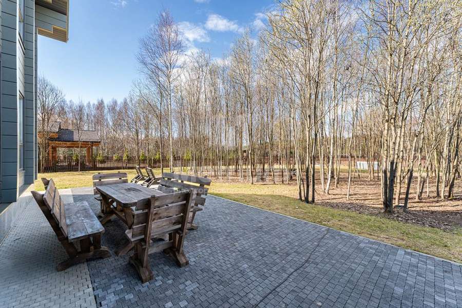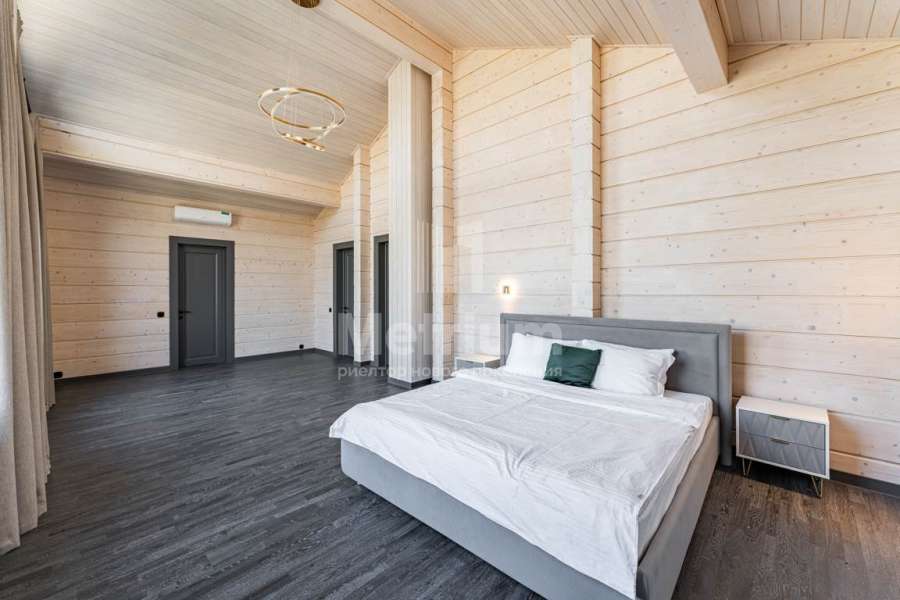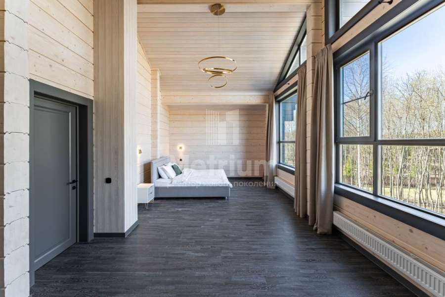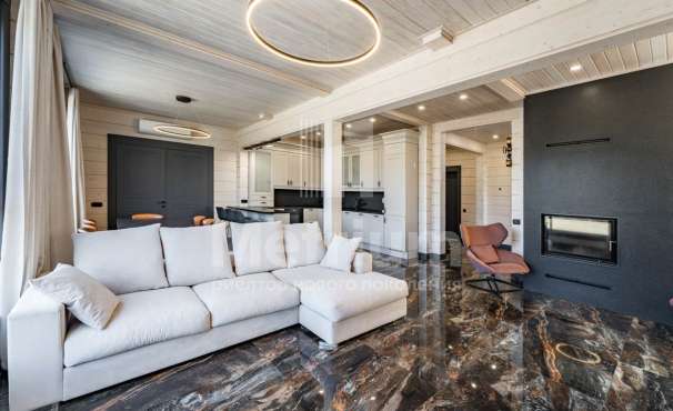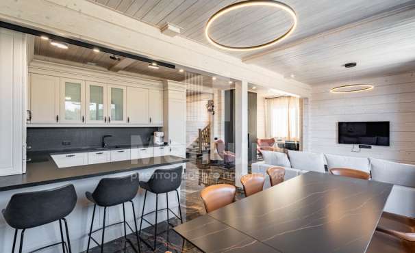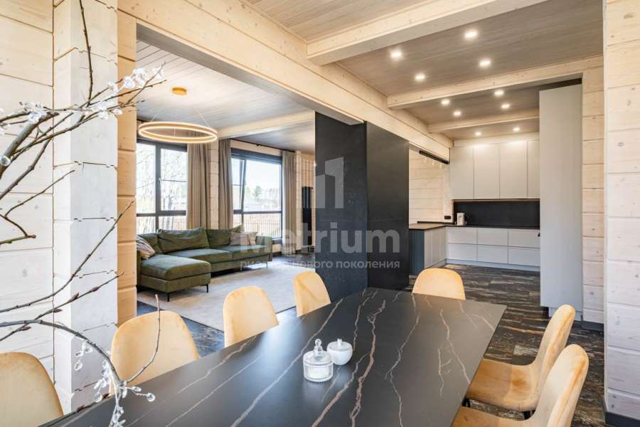 Дом из клеёного бруса. В доме просторная мастер - спальня с своим санузлом и гардеробной и дополнительно 4 спальни с двумя санузлами. Гостиная - столовая - кухня. Сауна. Навес на две машины. Качественная отделка под ключ, экологически чистые материалы. Благоустроенная территория. Котлы VIESSMANN, BAXI, техника SMEG, AEG, LIEBHERR. Видеодомофон. Фасадное освещение с датчиком освещенности. Подогрев ступеней крыльца. Навес на две машины. Паркинг мощеный брусчаткой. Отмостка с водосбором и сбросом в ливневую канализацию. Смонтирована ливневая канализация. Качественная отделка под ключ, экологически чистые материалы. Вода, электричество, газ, канализация, оптиковолокно подключены. Все коммуникации центральные. Охрана поселка. Возможна индивидуальная охрана дома и оборудование его сигнализацией.