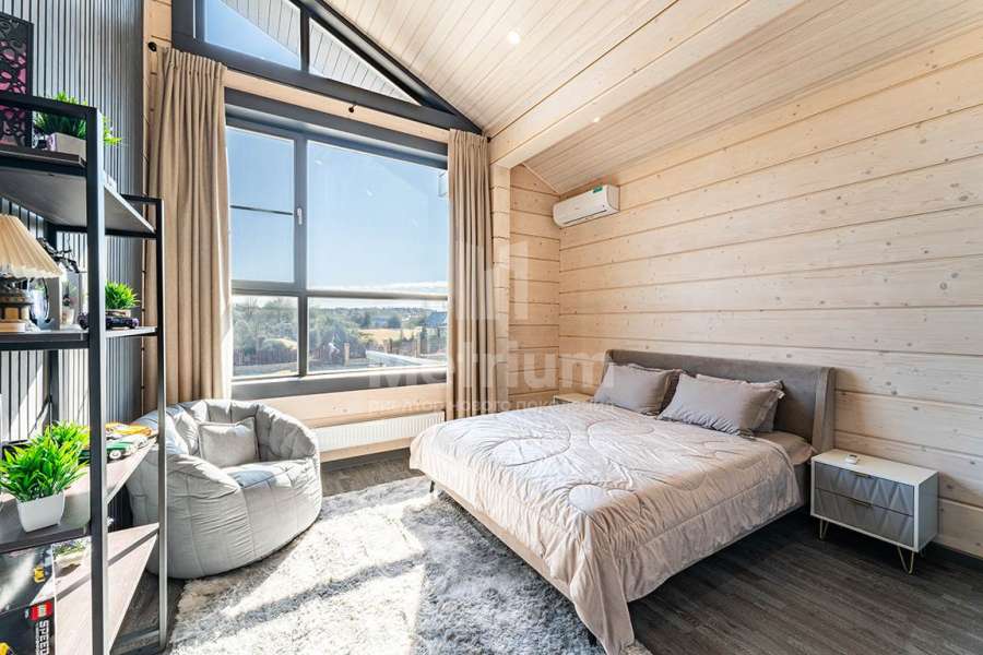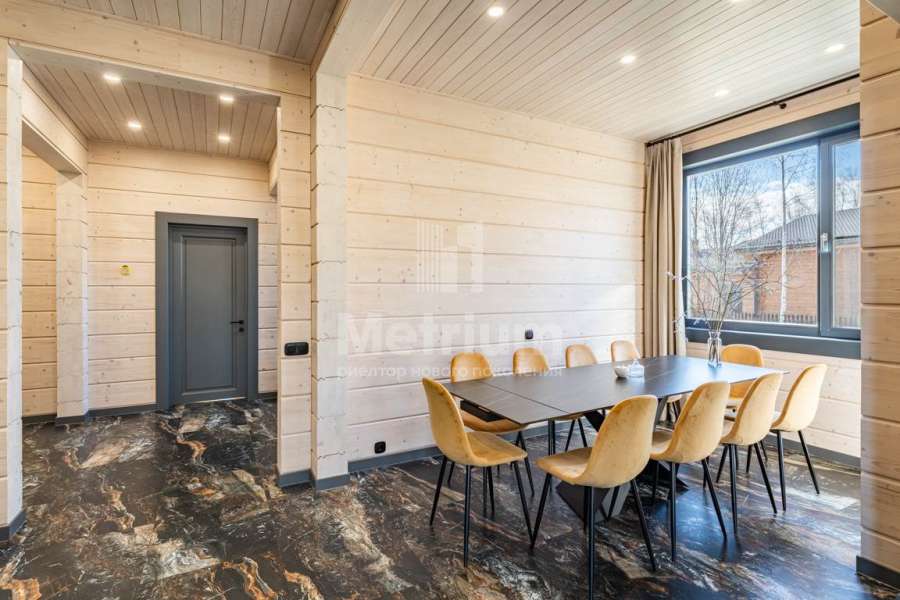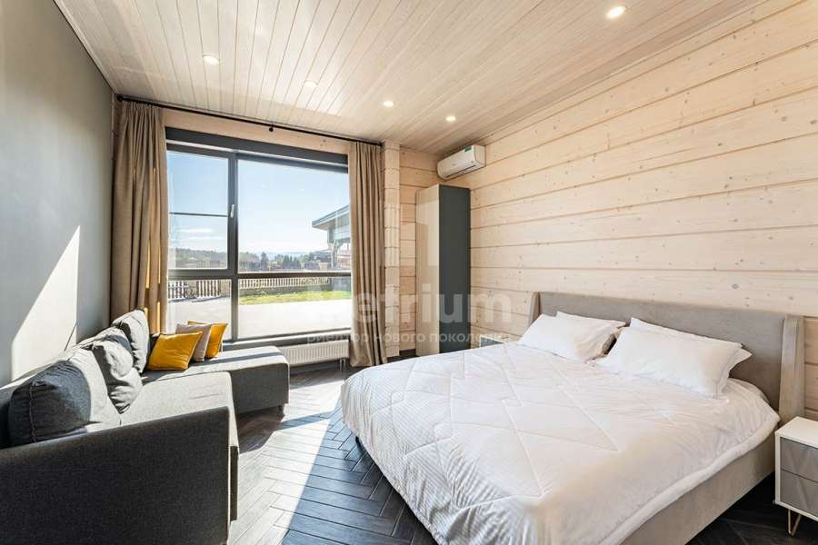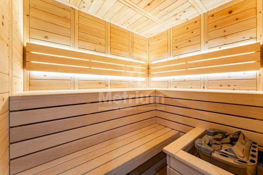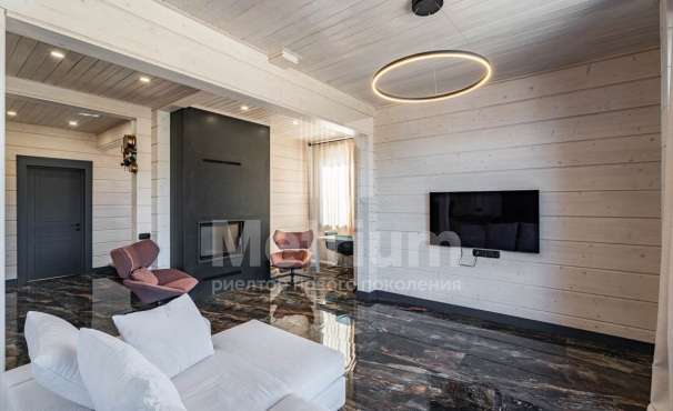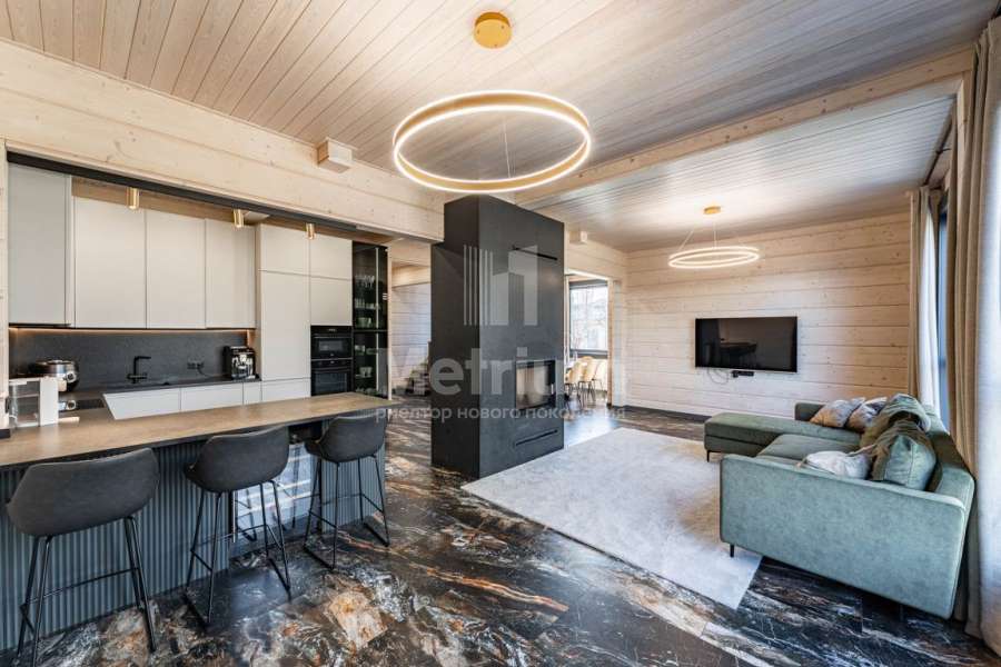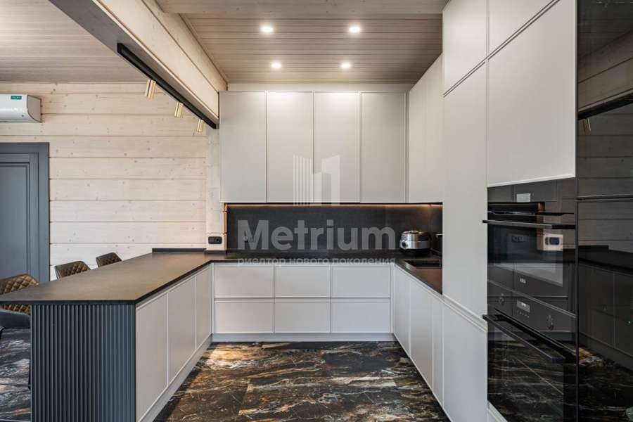 Дом из клеёного бруса. В доме просторная мастер - спальня с своим санузлом и гардеробной и дополнительно 4 спальни с двумя санузлами. Гостиная - столовая - кухня. Сауна. Навес на две машины. Качественная отделка под ключ, экологически чистые материалы. Благоустроенная территория. Котлы VIESSMANN, BAXI, техника SMEG, AEG, LIEBHERR. Видеодомофон. Фасадное освещение с датчиком освещенности. Подогрев ступеней крыльца. Навес на две машины. Паркинг мощеный брусчаткой. Отмостка с водосбором и сбросом в ливневую канализацию. Смонтирована ливневая канализация. Качественная отделка под ключ, экологически чистые материалы. Вода, электричество, газ, канализация, оптиковолокно подключены. Все коммуникации центральные. Охрана поселка. Возможна индивидуальная охрана дома и оборудование его сигнализацией.