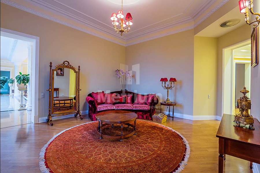 1 этаж: прихожая, лифт, с/у, холл, второй свет, столовая с каминном, выход на террасу, кухня, комната отдыха, спальня с с/у и гардеробной, кабинет, приемная 2 этаж: холл, лифт, библиотека, две гостиные, спальня с с/у и гардеробной, будуар, спальня с с/у, спальня с с/у и гардеробной |
