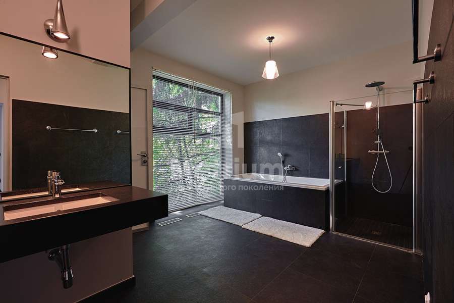 К особенностям отделки дома относятся: уникальное воздушное отопление, кондиционирование и увлажнение, панорамное остекление, подогреваемые полы, массивная половая доска, гранитные столешницы, дизайнерская кухня Nolte, итальянская плитка, сан техника Duravit и HansGrohe. Спутниковое телевидение, опто - волоконный интернет. Дом был построен в 2006 году и полностью отремонтирован в 2011-2012 году.