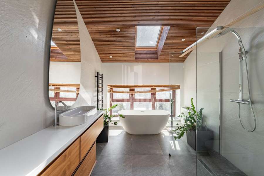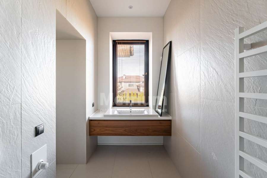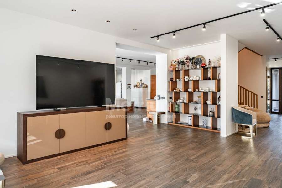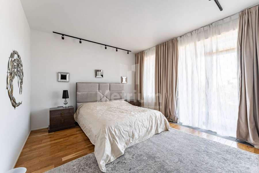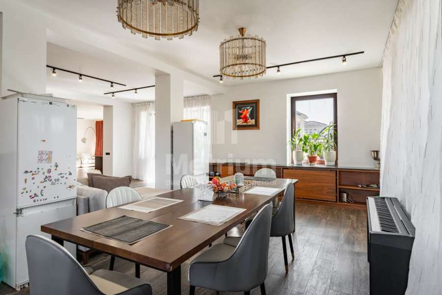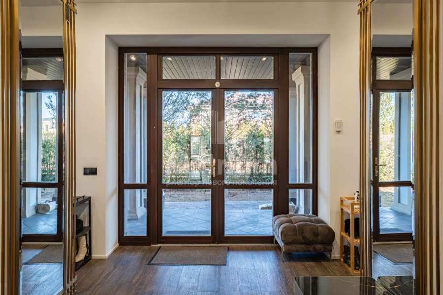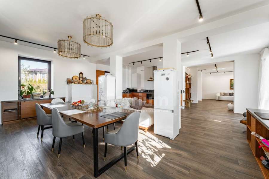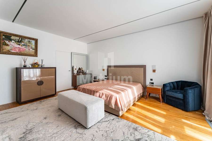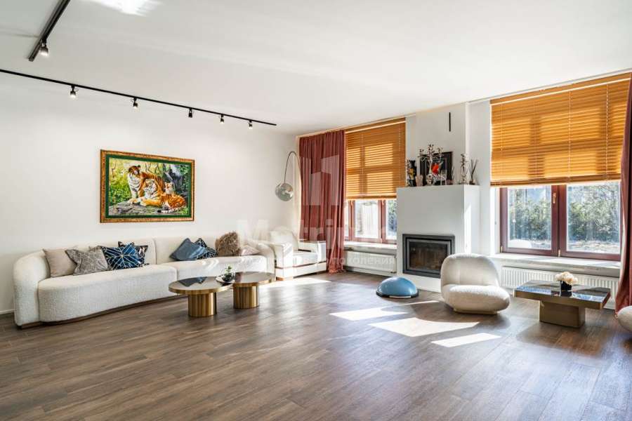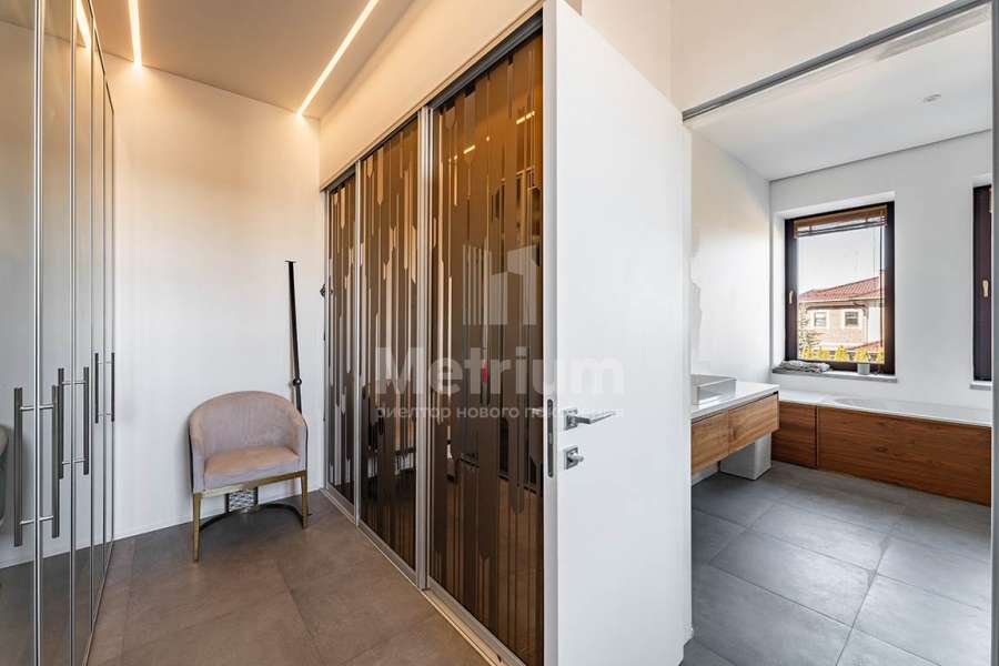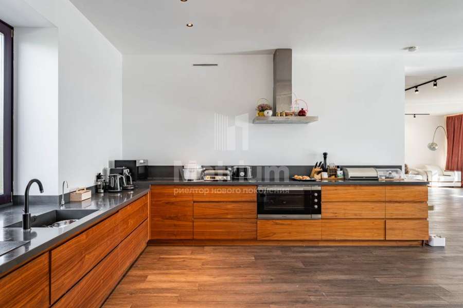 Дом полностью укомплектован и готов для комфортного проживания. На первом этаже просторная кухня-гостиная с камином для уютных домашних вечеров. На втором этаже 4 спальни с собственными ванными комнатами и гардеробными. Отделка выполнена из качественных материалов, установлена техника ведущих производителей.