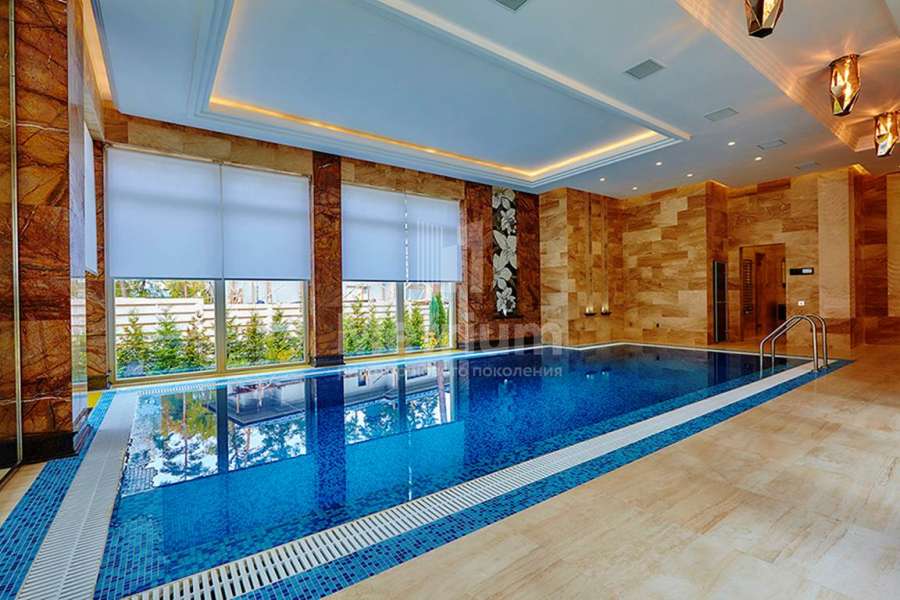 | Этажи/уровни: | Цоколь: бильярдная, домашний кинотеатр, салон красоты, подсобные помещения, прачечная, 3 котельные. 1-й уровень: холл, гостевой санузел, гардеробная, гостиная, кухня, столовая, тренажерный зал, SPA-зона с бассейном, сауной и хамамом, 2 спальни с ванными комнатами и гардеробными. 2-й уровень: 2 спальни, 2 спальни с ванными комнатами и гардеробными, балкон. |
