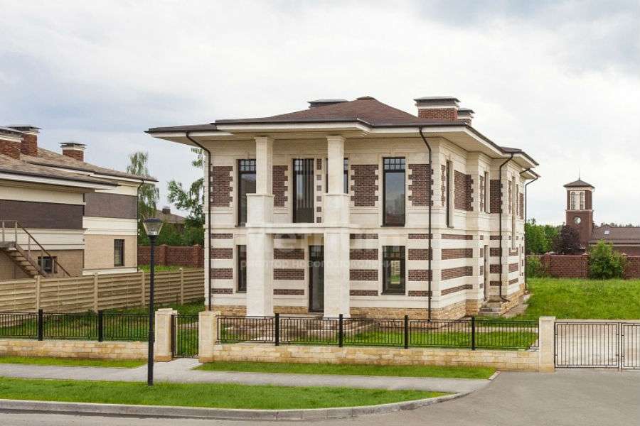 Отделка фасада - натуральный камень, песчаник. Дом располагается недалеко от леса в жилой части поселка. Коттеджный поселок Прозорово расположен в 12 километрах от МКАД по Рублево-Успенскому шоссе в 5 минутах от Жуковки. Расположение поселка дает возможность выбирать дорогу в Москву – по Рублево-Успенскому или Новорижскому шоссе. в 5 минутах езды – элитная школа «Президент», престижный торговый центр «Жуковка-плаза», спортивно-оздоровительный центр World Class. Элитный загородный поселок Прозорово – это 64 коттеджа, выполненные в одном из пяти вариантов декоративной отделки.