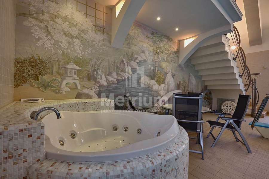 | Этажи/уровни: | Цоколь: бильярдная, тренажерный зал, подсобные помещения. 1 этаж: прихожая, холл, кухня - столовая, гостиная, гостевая спальня с/у, бассейн, сауна 2 этаж: гостиная с камином,3 спальни, 2 с/у, кабинет, библиотека. |