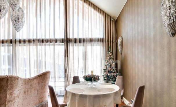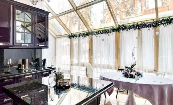Дом построен в стиле русского модерна. В отделке дома использованы уникальные материалы, кованные вручную решетки для балконов, внутренней лестницы и ворот, все рамы и двери из монолита ценных пород, расписанные вручную художниками Санкт-Петербургской Академии художеств - витражы, в стиле Марка Шагала. Кабинет на 2 этаже оборудован мебелью выполненной из массива красного дерева по образцам царской мебели в Павловском дворце, красивой антикварной люстрой. Большая гостиная комната занимает половину этажа, в ней большой мраморный камин с фигурами античных женщин, антикварный мебельный гарнитур из карельской березы, бронзовые бра и люстра. На третьем этаже расположены мастер-спальня с камином -изготовленная по заказу в стиле модерн, очень красивая ванная комната с расписанной вручную плиткой картинами Альфонса Мухи и Ботичелли, английская и шведская сантехника в стиле ретро. В доме на 1этаже есть бассейн и финская сауна красиво оформленная расписной пейзажной плиткой (по мотивам картины Ивана Шишкина "Берег Финского залива"). На участке также есть детская площадка, летняя беседка, летний пруд-бассейн, гараж на 2 м/м, два хоз.блока, вольер для собак и большое количество декоративных и плодоносящих деревьев. В доме также есть полностью оборудованная квартира для проживания обслуживающего персонала и охраны. Великолепная транспортная доступность: от Москвы без светофоров по Рублевке или по новой платной трассе без пробок. В непосредственной близости находится развитая инфраструктура поселка Барвиха - Вилладж: магазины, рестораны, теннисные корты, спортивный комплекс, концертный зал, салон красоты.