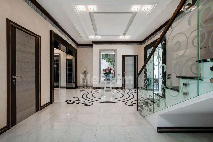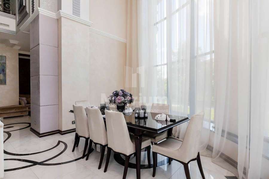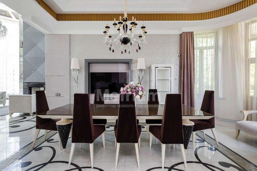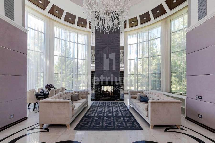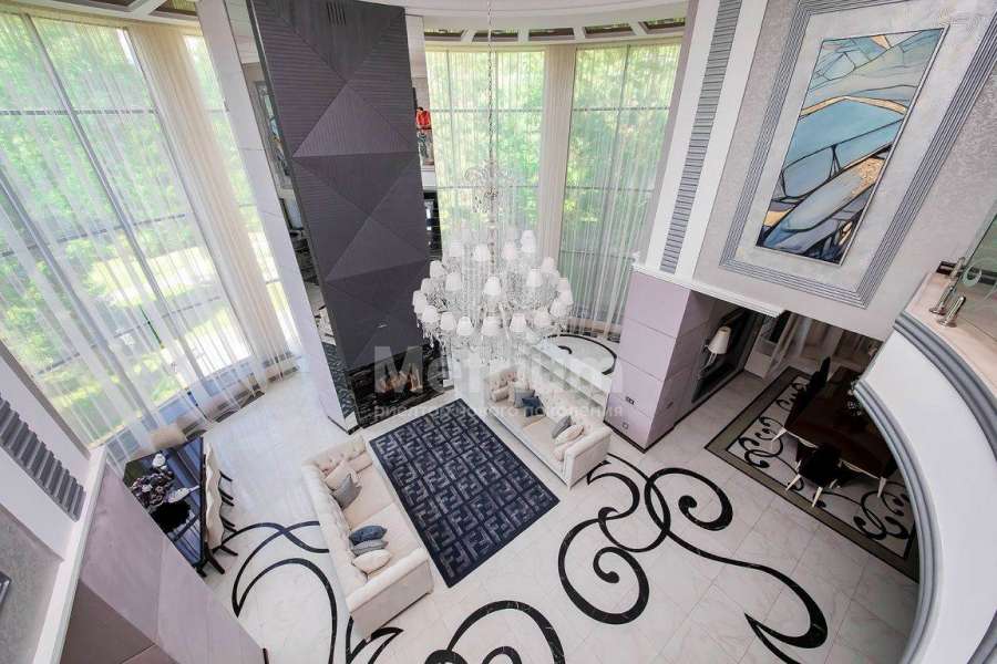 Дом? площадью 768 кв.м расположен на участке 29,39 соток в застроенной части поселка Монтевиль, в шаговой доступности от парковой зоны. Крупные деревья по периметру участка создают невероятное чувство приватности и уединения. Интерьер выполнен под ключ с мебелью, декором, сантехникой и техникой премиального качества производства Италии, Бельгии, Германии. Напольные покрытия: керамогранит Valentino лазерной резки на заказ, Roberto Cavalli, итальянский мрамор, паркет Coswick. Стены: декоративное покрытие Oikos Ottocento, обои Arte Oxide(Бельгия) и Италия. Плитка в санузлах: Fap, Valentino Imperiale. Сантехника: Cielo, Artceram, Villeroy&Bosch, Balteco. Межкомнатные двери Romagnoli, свет - Италия на заказ. Ковры FENDI, Ralph Lauren. В двухсветной гостиной установлен туннельный камин также выполненный по индивидуальному заказу. Кровля выполнена из керамической черепицы, подогреваемое крыльцо облицовано гранитом. В доме установлена центральная система вентиляции и кондиционирования DAIKIN.Дополнительно на участке расположен гостевой дом 232 м2 с приватной SPA-зоной с отдельным входом, гаражом для 2-х автомобилей и садовой техники и апартаментами для персонала на втором этаже.
