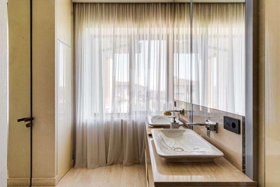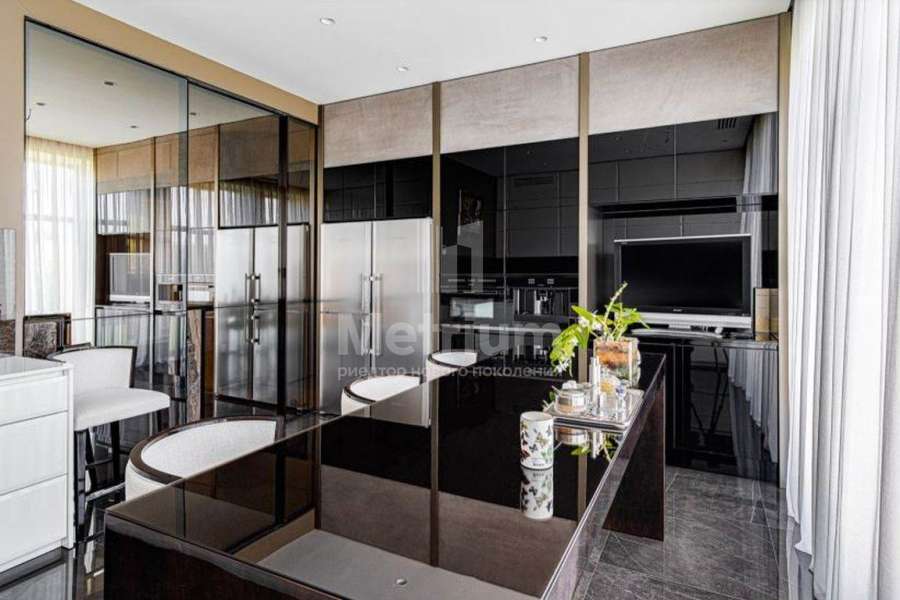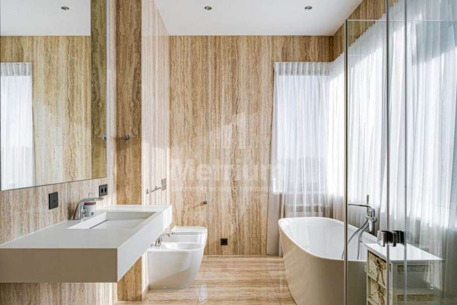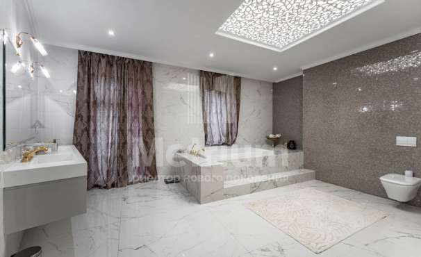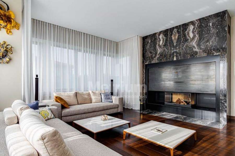 В доме выполнен дизайнерский ремонт, отделка класса люкс. Полы в прихожей, гостиной, два санузла и камин выполнены из натурального камня, привезенного из Италии мрамора и травертина. Паркет от итальянской фабрики IPF, керамогранит от итальянского премиумпроизводителя Fiandre. Раздвижные двери и стеновые панели от итальянской премиальной фабрики LONGHI. Сантехника топовых брендов: HIPPE, Cielo, Gessi, Bisazza, Antonio Lupi, Duravit, Ideal Standard. Кухня фабрики Mittel. Фасад отделан натуральным камнем, дорогие окна, натуральная черепица.
