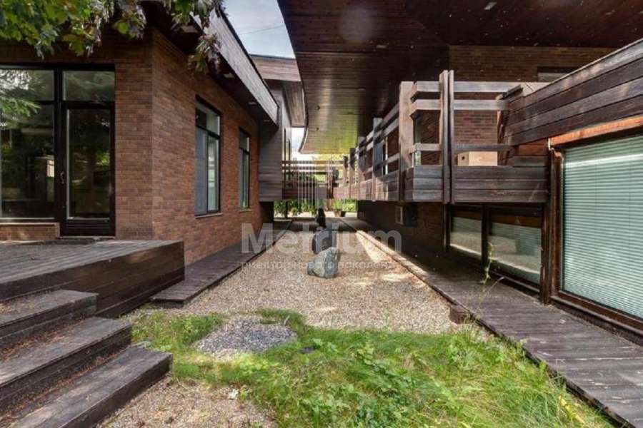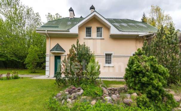 Дом на земельном участке со стильным ландшафтом. Расположен в обжитом поселке "Знаменское поле". Проезд в поселок по Рублево-Успенскому шоссе. Вдоль Рублёво-Успенского шоссе расположены объекты социально-бытовой инфраструктуры: детский сад, школа, супермаркеты.