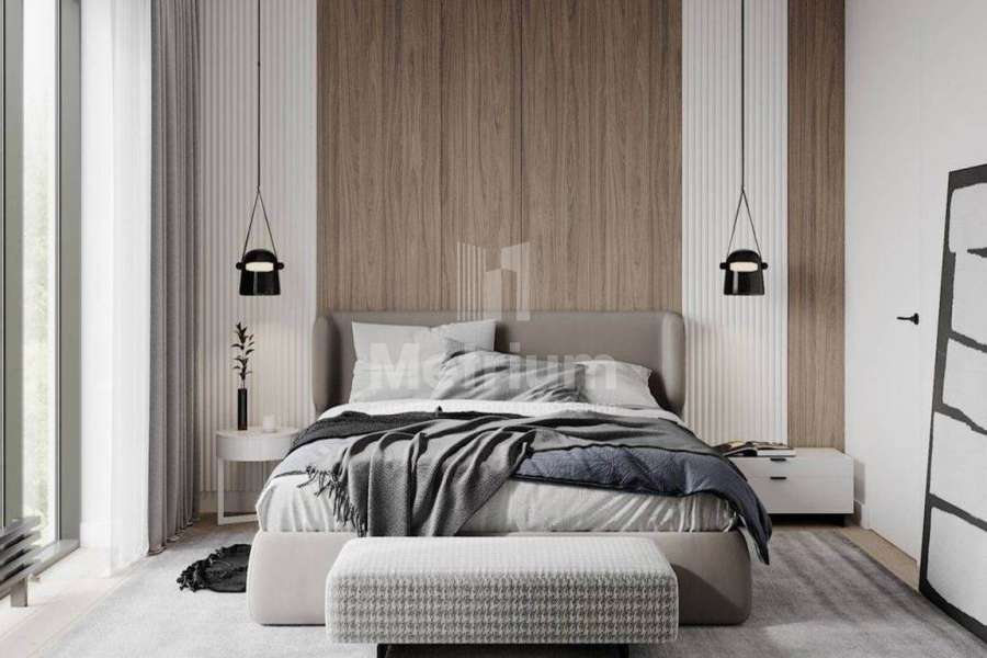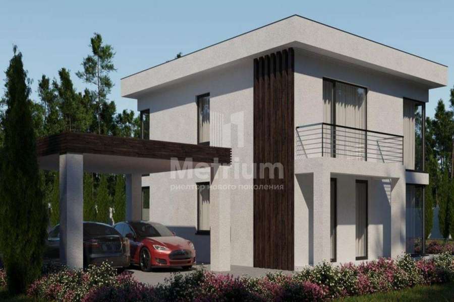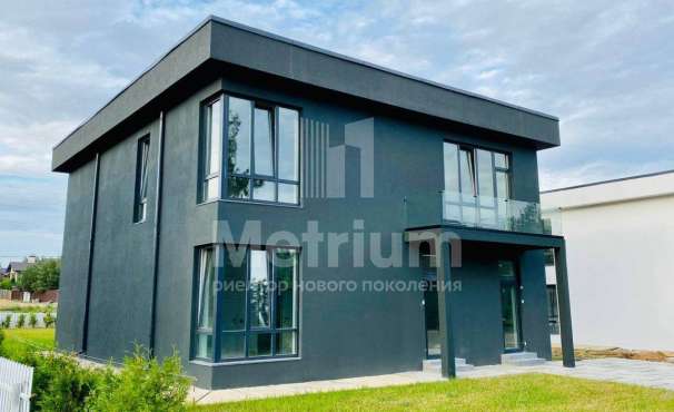 Загородный дом в современном стиле с белым фасадом облицован декоративной фасадной штукатуркой и деревянными панелями. В доме выполнена отделка «под ключ» в современном стиле. На первом этаже просторная кухня-столовая-гостиная с выходом на террасу, хозяйственные помещения и гостевая спальням. На втором — 3 спальни с санузлами и гардеробными. На озелененном угловом участке 7,9 соток можно поставить 2 автомобиля, построить навес или гараж. "Горки О2" — территория коттеджной застройки на 14 домов внутри сформированного коттеджного поселка Горки 2 (3-я очередь). Все дома построены в едином архитектурном современном стиле. Фасады домов выполнены в светлых и темных тонах. Каждый участок выровнен и засеян газоном. У каждого дома предусмотрена парковка для 2-х машин. Территория коттеджной застройки занимает около 1 Га земли.