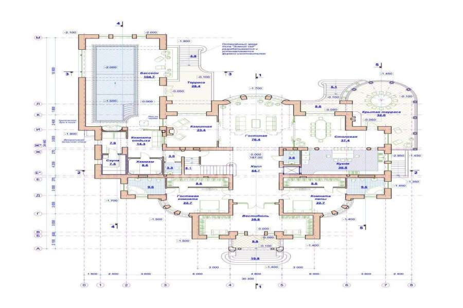 | Этажи/уровни: | 1 этаж: Гостевой санузел; Две спальни с гардеробными и санузлами; Гостиная с вторым светом; Столовая с выходом на крытую террасу; Кухня; Каминная; Бассейн с хаммамом и сауной и выход открытую террасу. Предусмотрен лифт с цокольного этажа, до мансарды. 2 этаж: Мастер спальня с большой гардеробной и большим санузлом; Две спальни/детские с общим санузлом и разными гардеробными; одна спальня/кабинет с гардеробной и санузлом; детская игровая комната. Мансарда: На мансарде можно разместить бильярдный стол или комнату; Есть кладовая комната; санузел. Цокольный этаж: Помещение для персонала с кухней, санузлом и гардеробной; Котельная; четыре кладовых помещения различного назначения; Постирочный блок (бельевая, сушильная, постирочная); Большая комната с высокими потолками для кинотеатра или спортзала. |