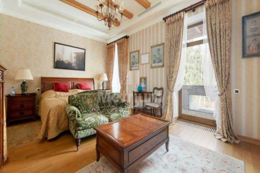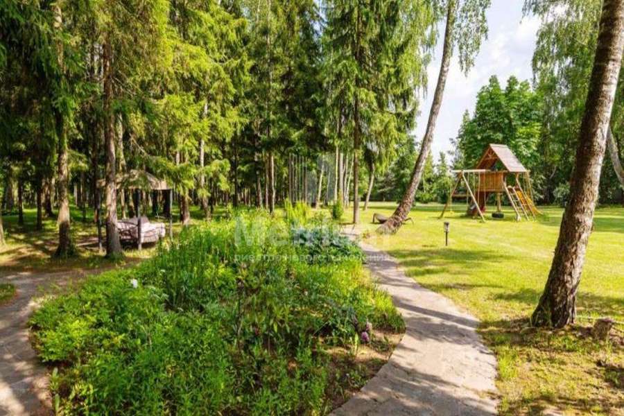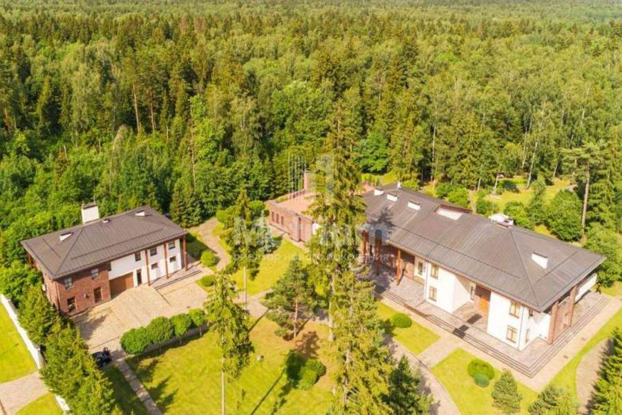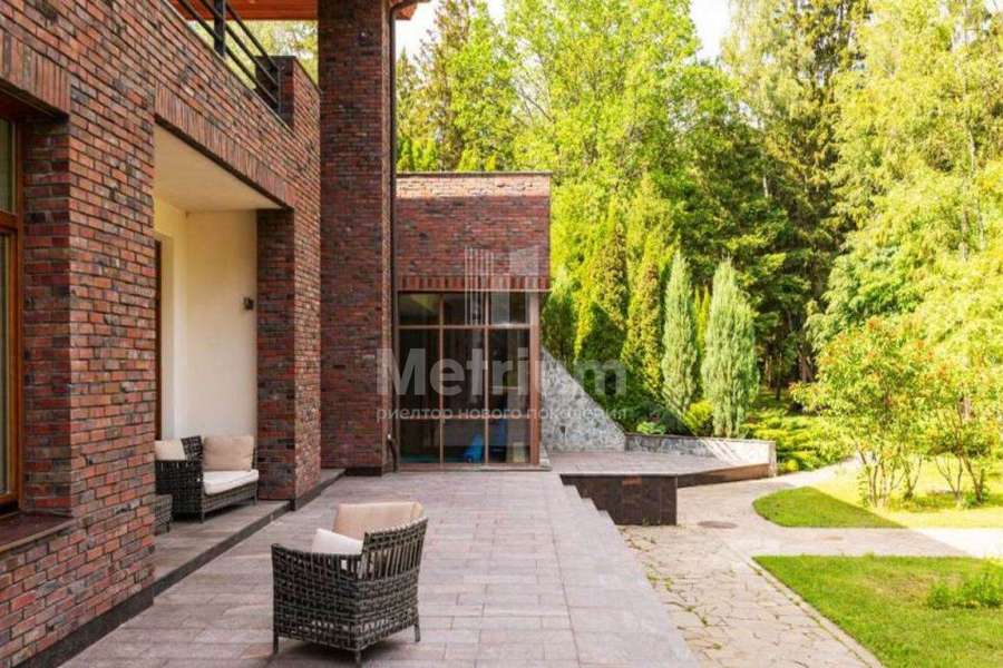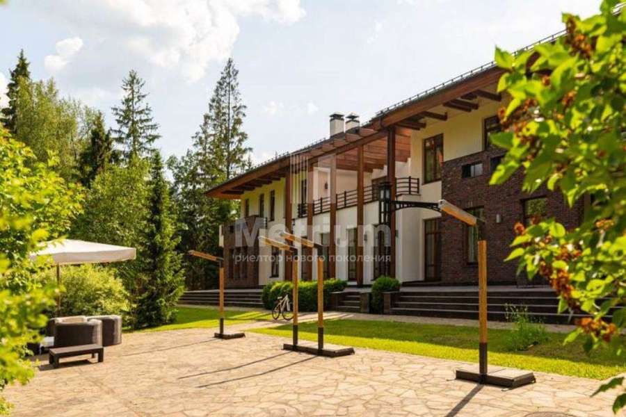 Трехуровневая загородная резиденция, построенная на огромном живописном лесном участке с дорогим ландшафтным дизайном, в охраняемом коттеджном поселке "Мозжинка".