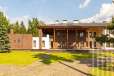 Усадьба состоит из трех строений: основной дом, соединенный подземным проходом со служебным флигелем, в котором расположен гараж на шесть машин, также при въезде на территорию есть дом для охраны.