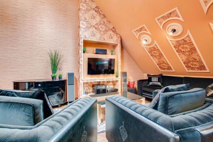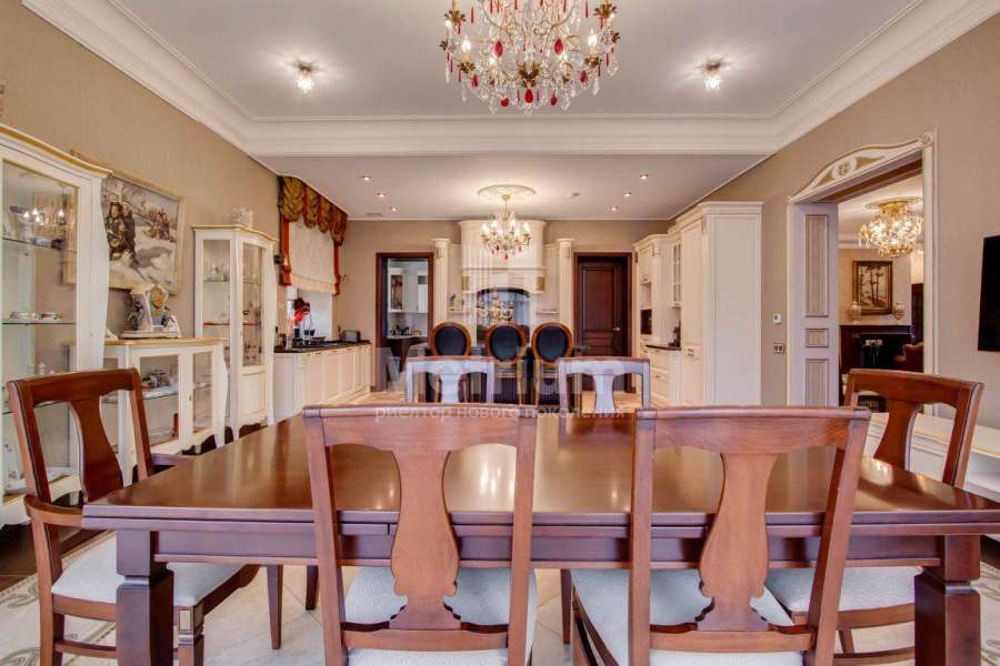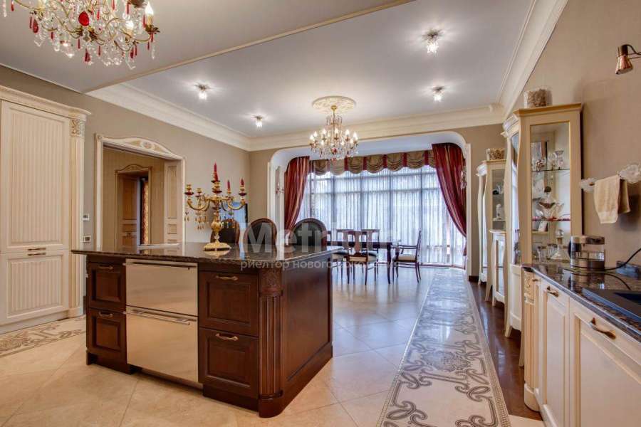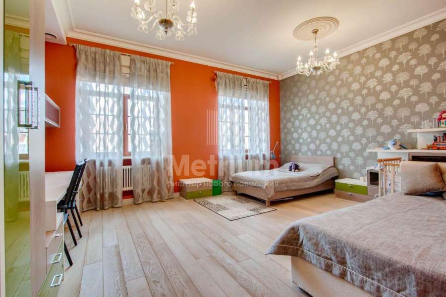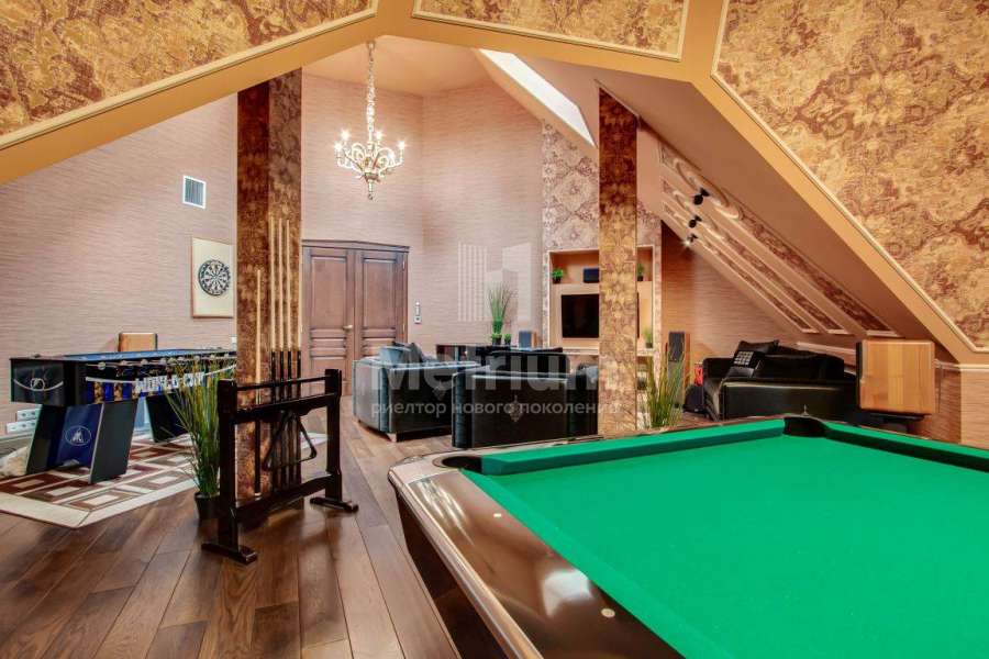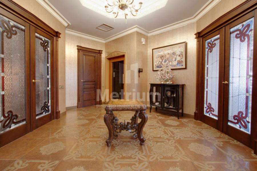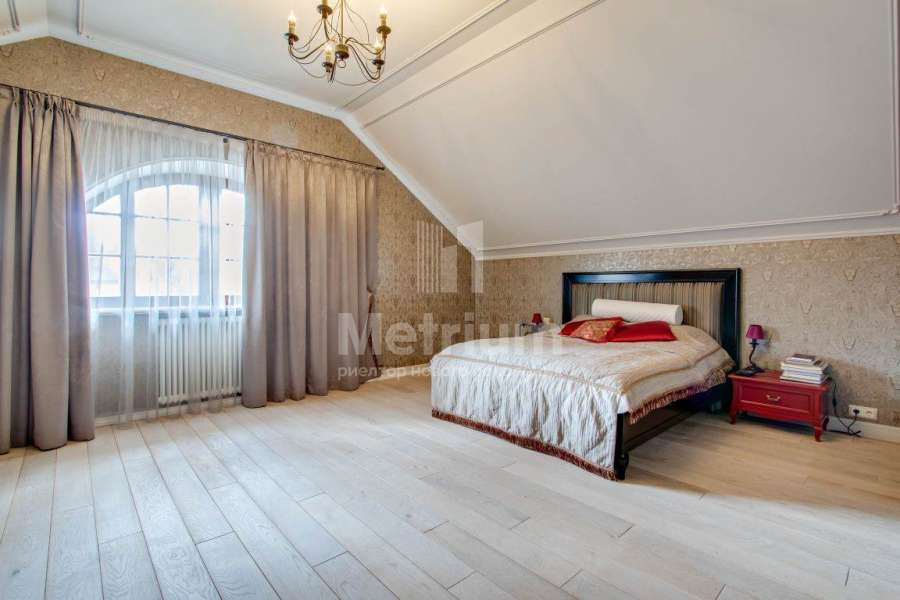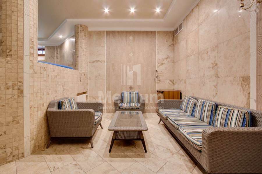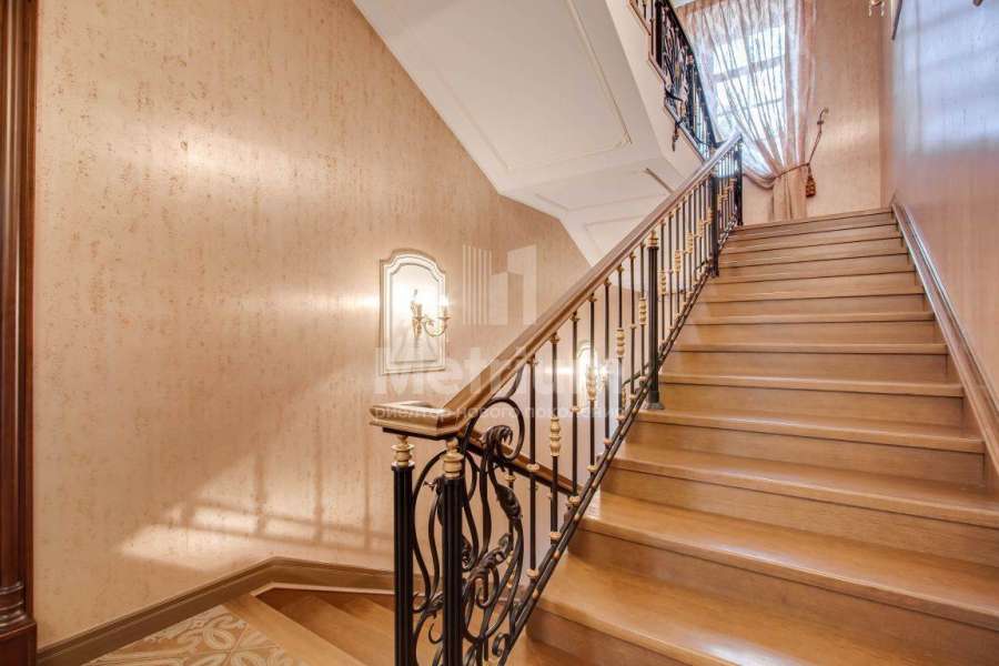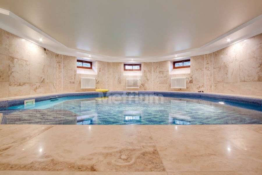 Коттедж в элитном коттеджном поселке «Береста» в бухте «Живописная» на берегу Мякининского водохранилища. Дом кирпичный, общей площадью 980 кв.м с большой площадью остекления, качественной отделкой и дорогой итальянской мебелью. Кухня полностью укомплектована техникой Neff, установлены винный шкаф и для фруктов. На стенах обои и художественная роспись. Полы и лестница – мрамор, массив дуба (Бельгия). Весь первый этаж – теплые полы. Подоконники – мраморная крошка. Камин мраморный – Франция. Установлены система кондиционирования, приточно-вытяжная система, широкий лифт с цоколя до мансарды. Крыша медная, установлен молниеотвод. На участке проведены ландшафтные работы, вымощены дорожки, высажены крупномеры и кустарники, установлено освещение. Отдельно расположен гараж на 2 м/м с квартирой для персонала на втором этаже: 1 этаж: гараж на 2 м/м с мойкой, с/у, котельная на оба дома, 2 этаж: гостиная, кухня, спальня.