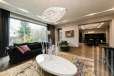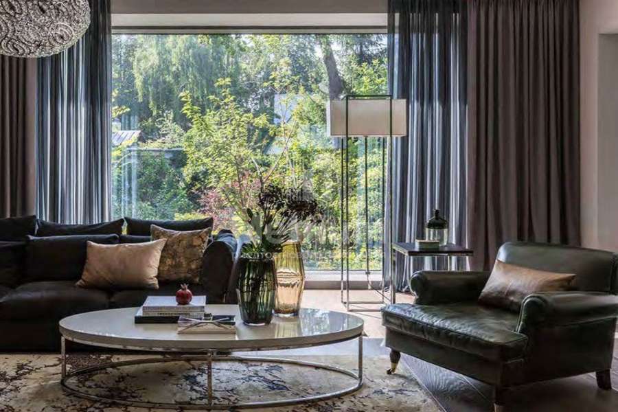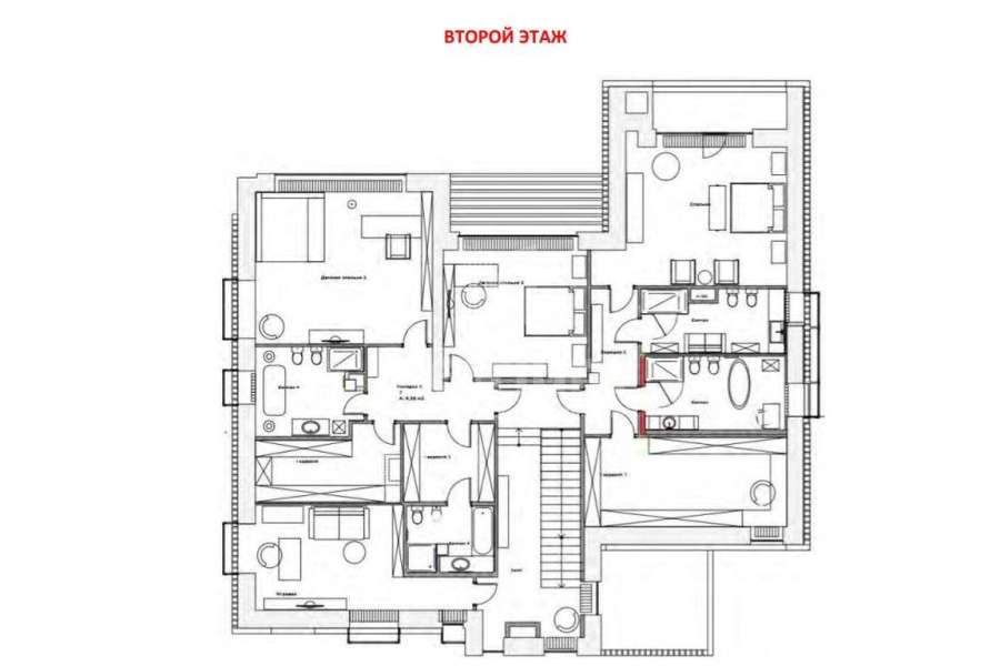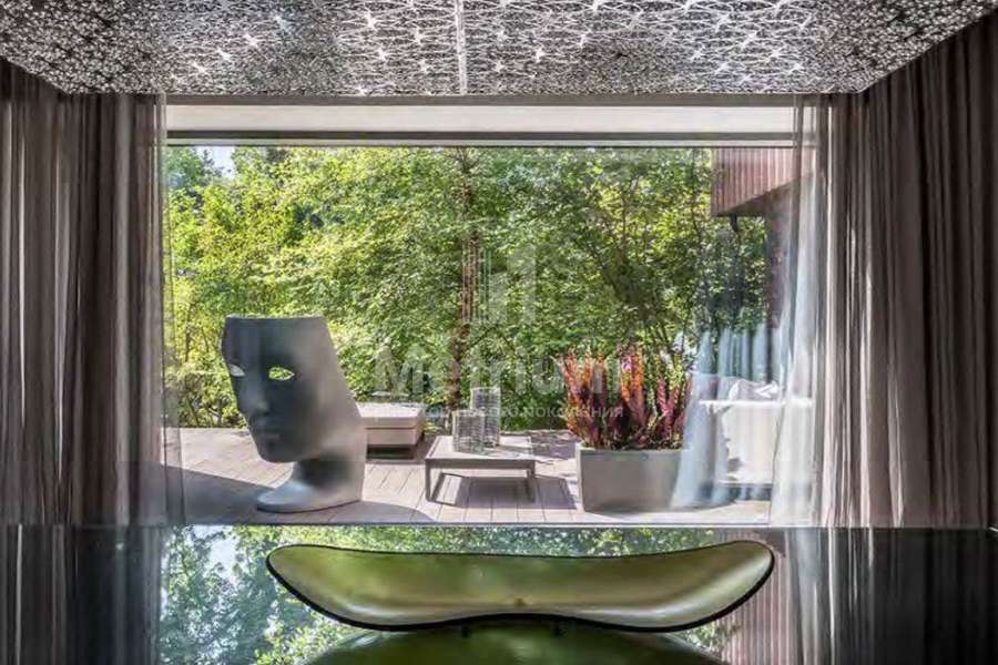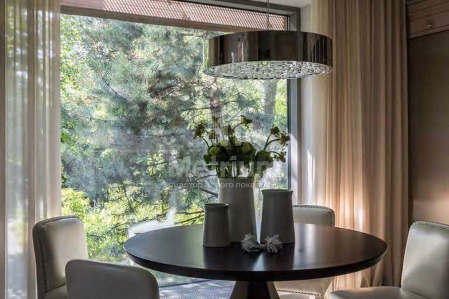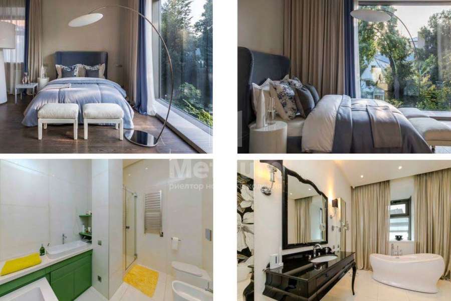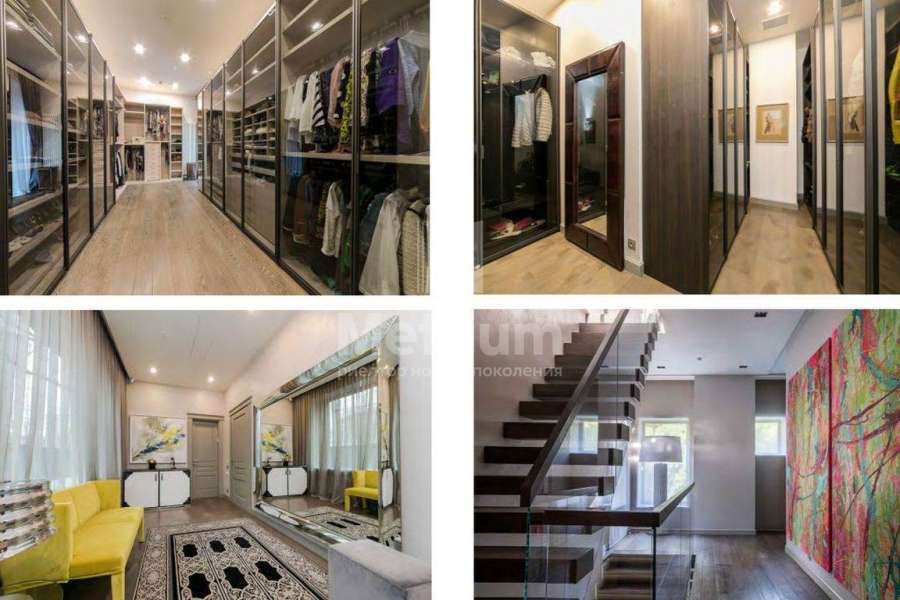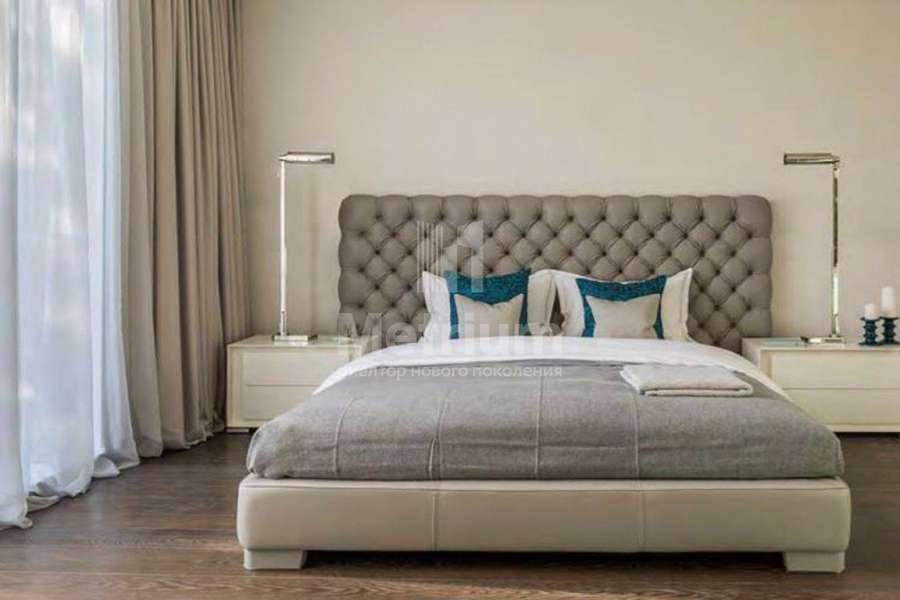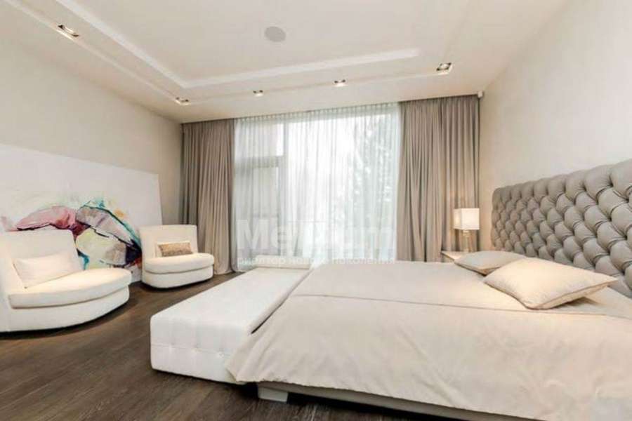 Дом с отделкой и мебелью "под ключ" площадью 750 метров. Эффективная планировка: 6 спален (взрослый мастер блок с одной спальней, детский мастер блок с двумя спальнями, гостевая спальня, кабинет/спальня, спальня в блоке для персонала). На участке 11.5 соток выполнен дорогой ландшафтный дизайн с освещением, полностью огорожен, зона барбекю, обустроены прогулочные дорожки и скамейки для отдыха, высажено много деревьев и различного декоративного кустарника.